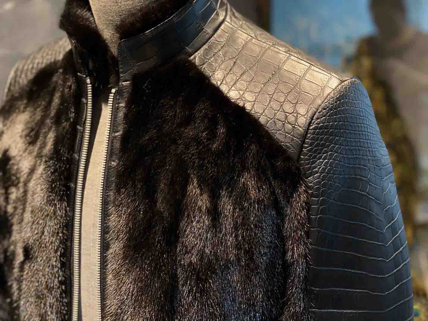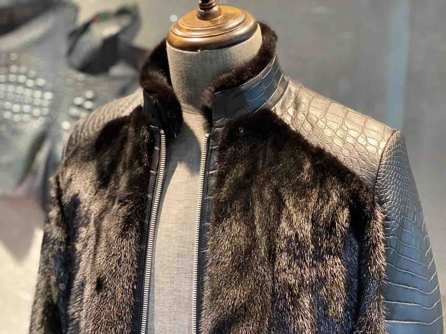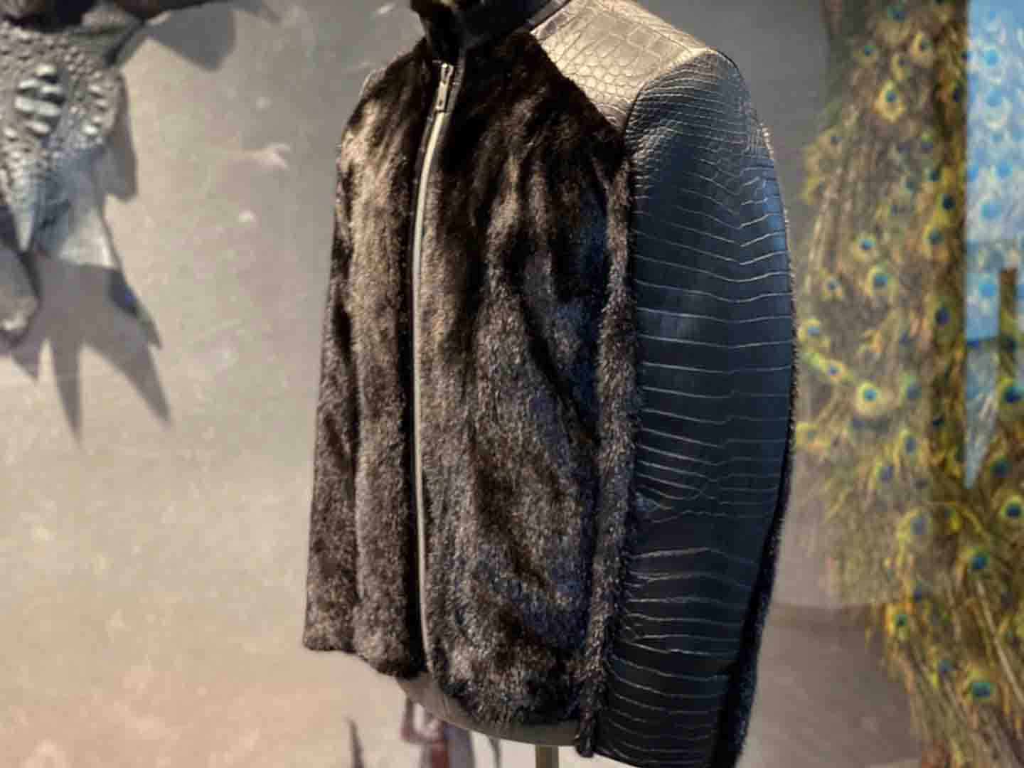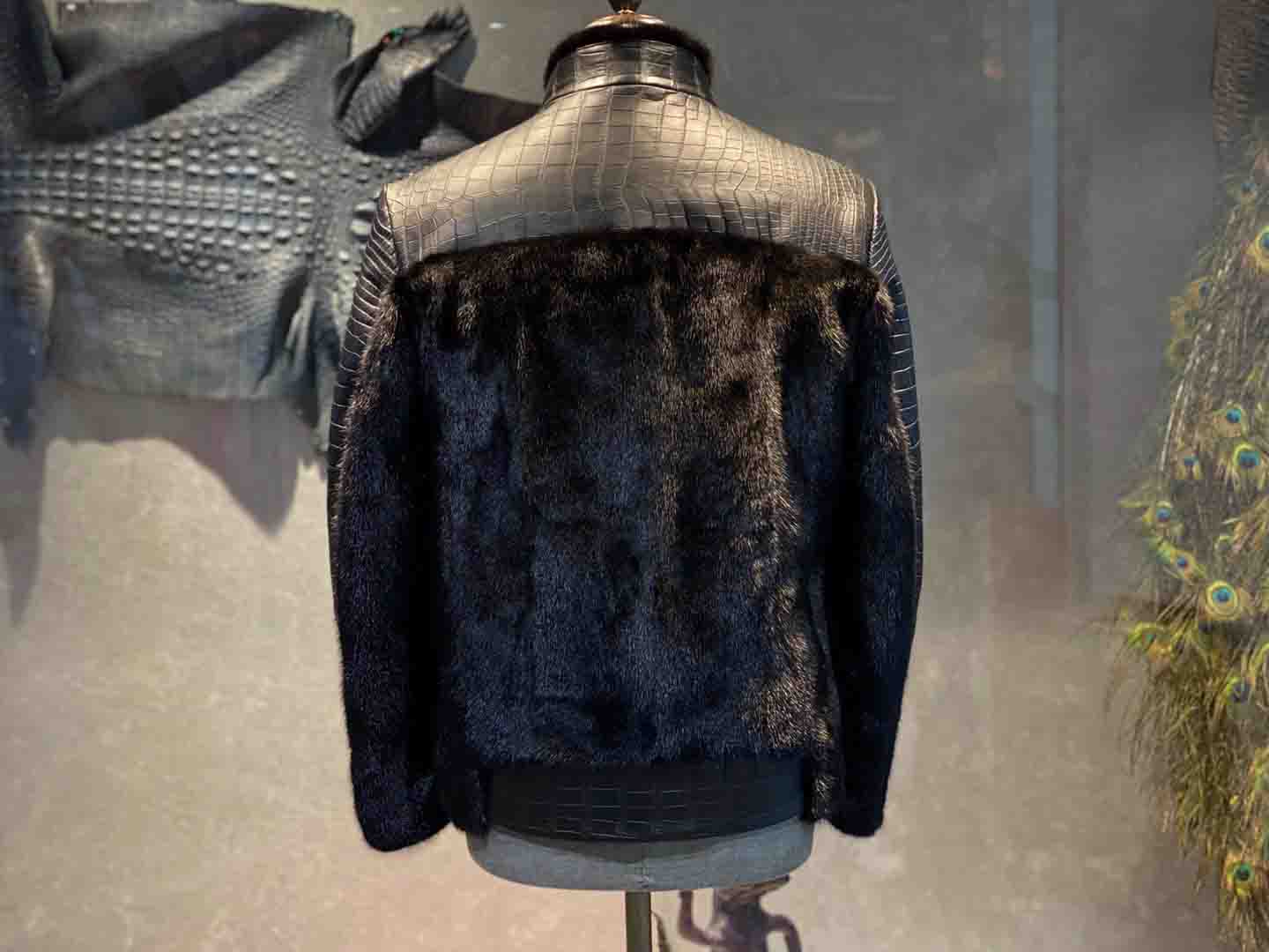 新款 貂皮配鳄鱼夹克 客定版 微信联系95506803 鳄鱼皮机车衣服订制工厂