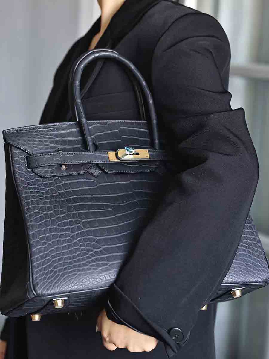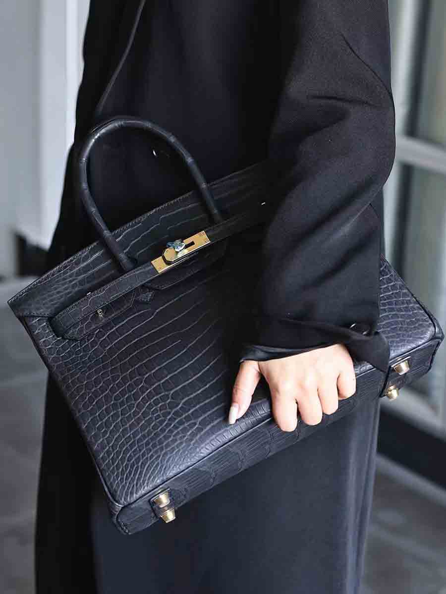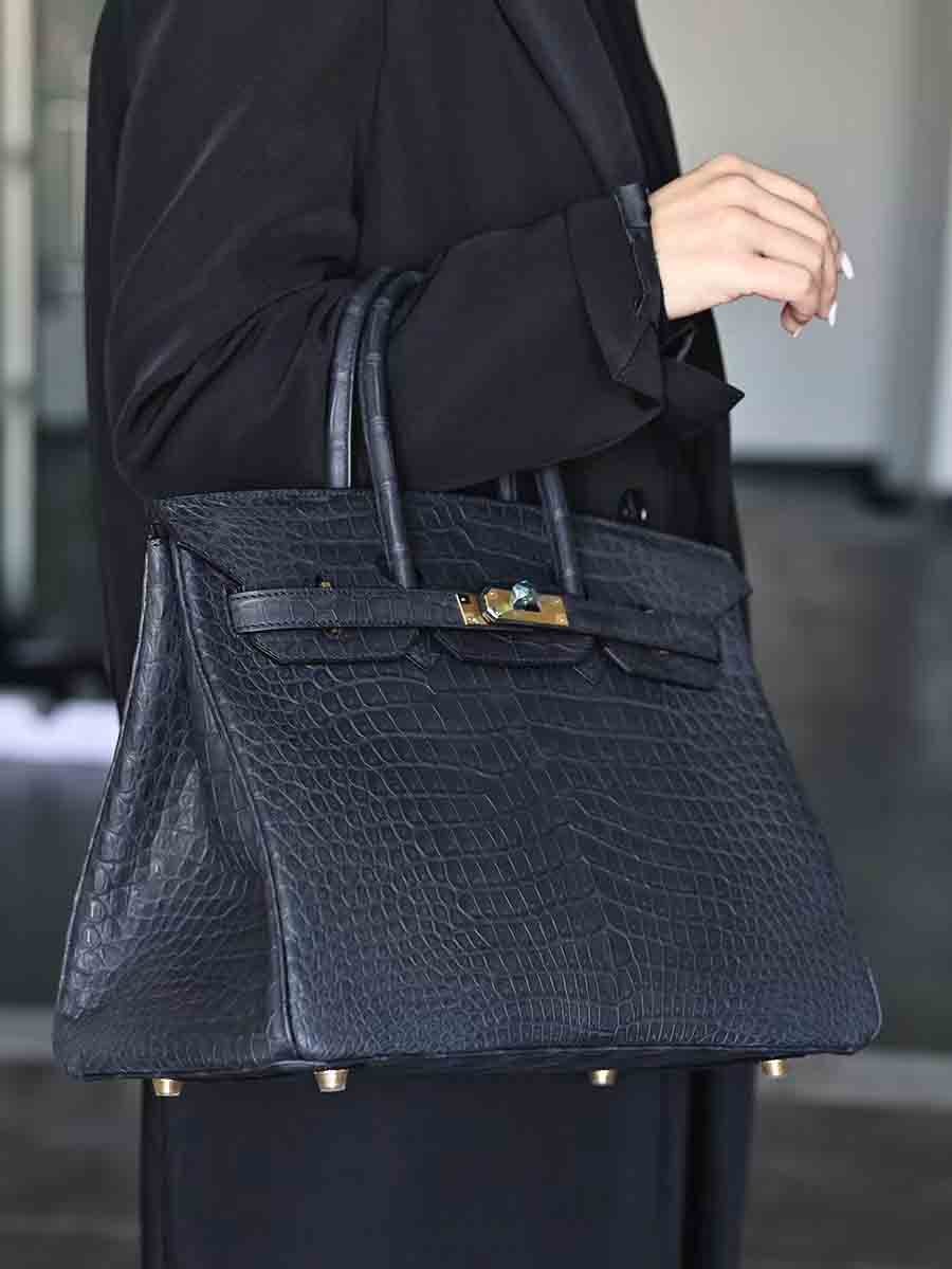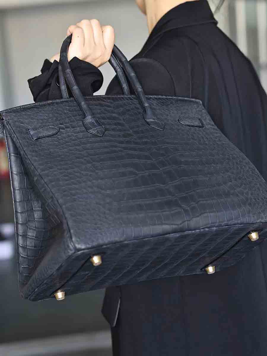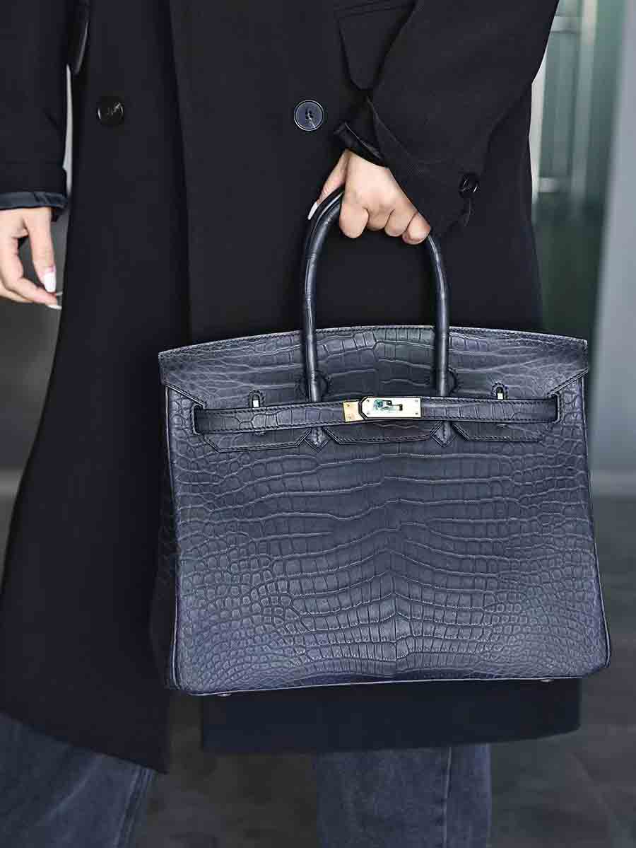 Birkin35,蓝黑色植鞣无涂湾鳄,客订出货。无涂湾鳄女手提包订制工厂。