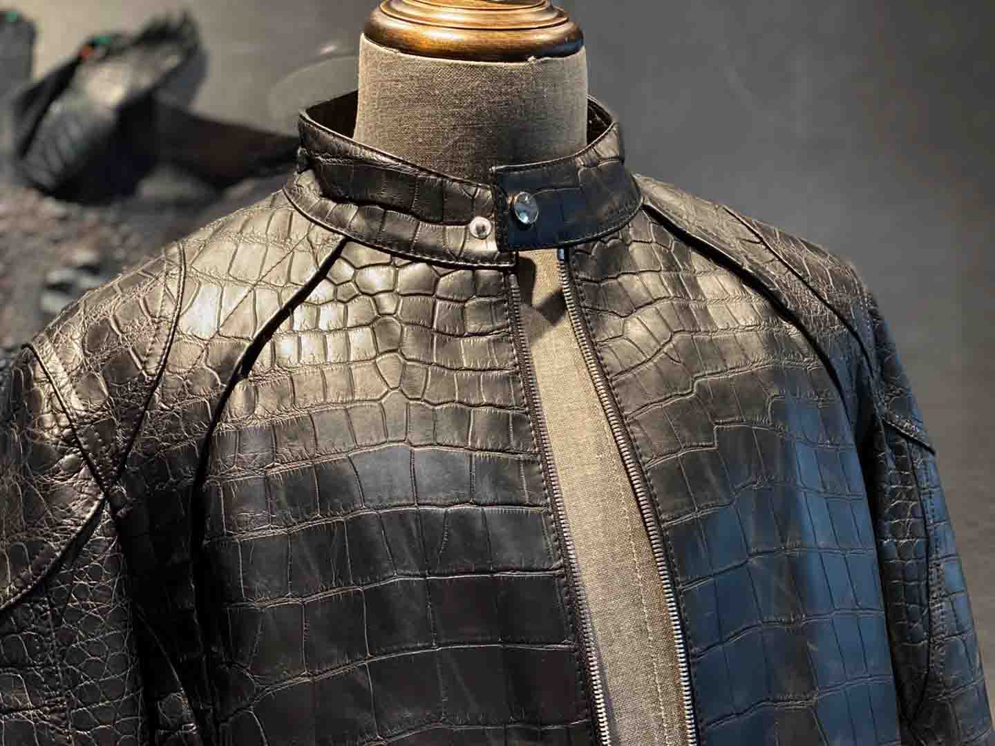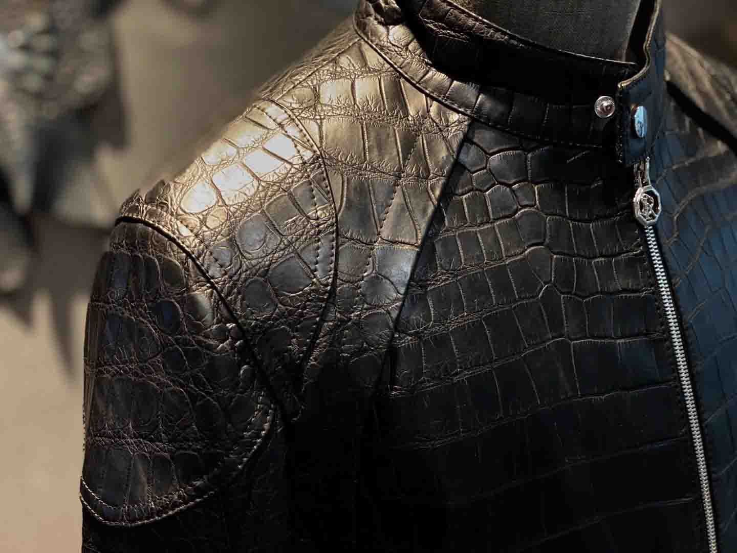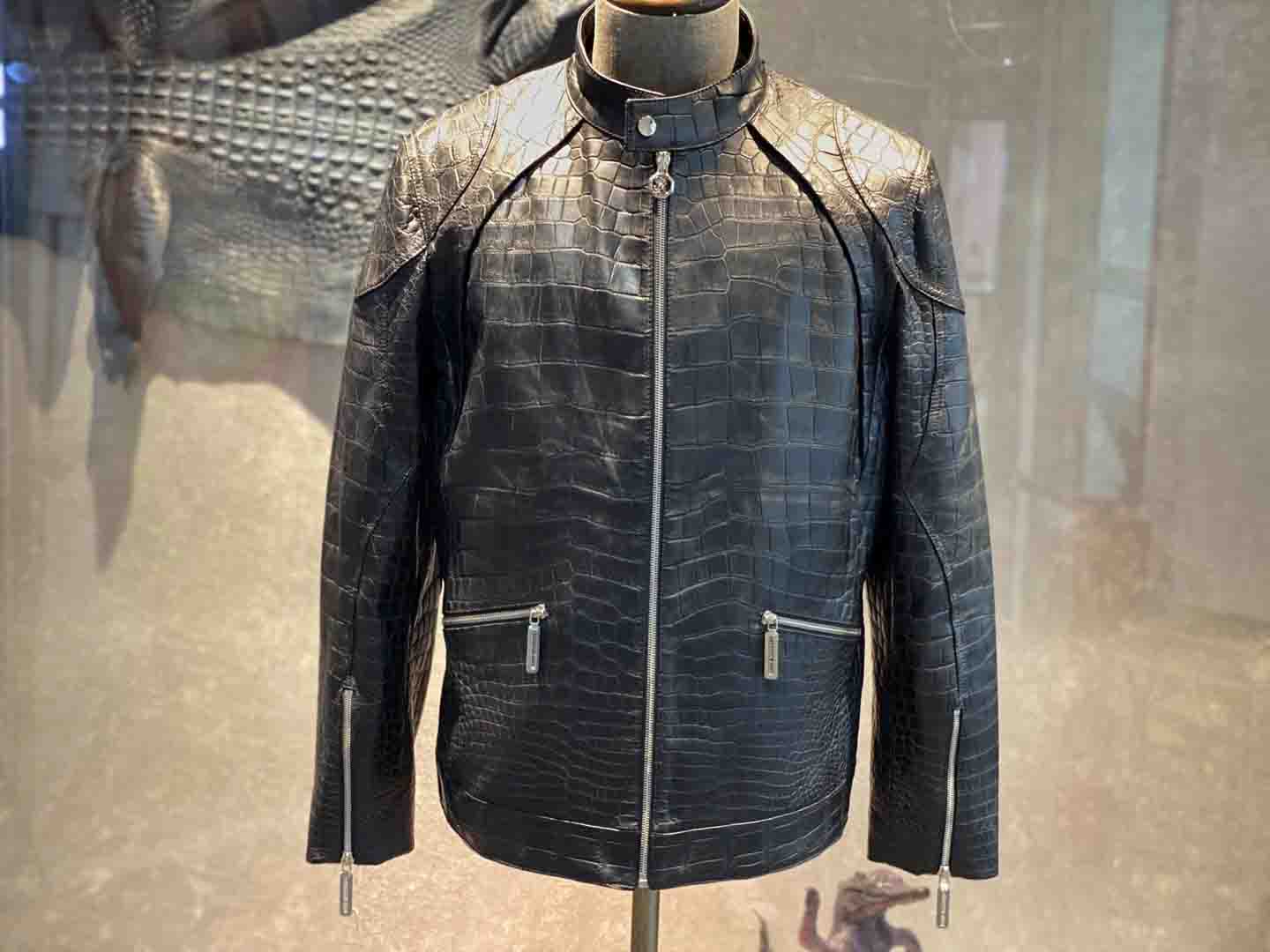 鳄鱼皮SDF款男士休闲夹克现货50码 ,尼罗暹罗鳄鱼皮机车夹克定制工厂微信联系 95506803