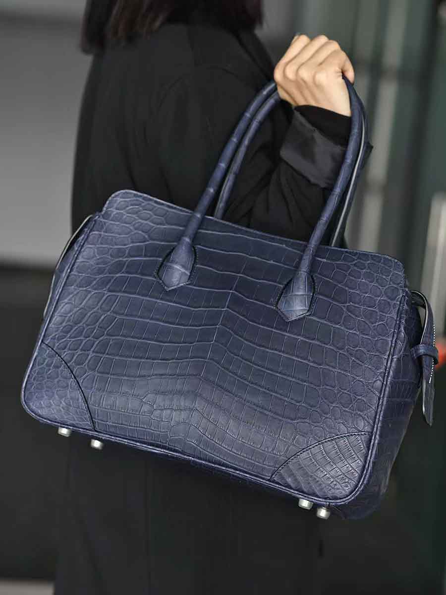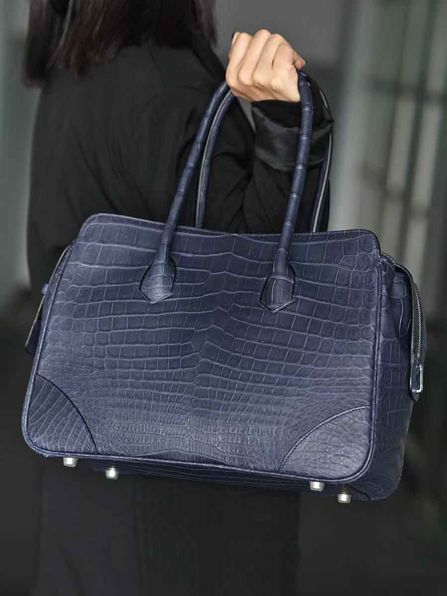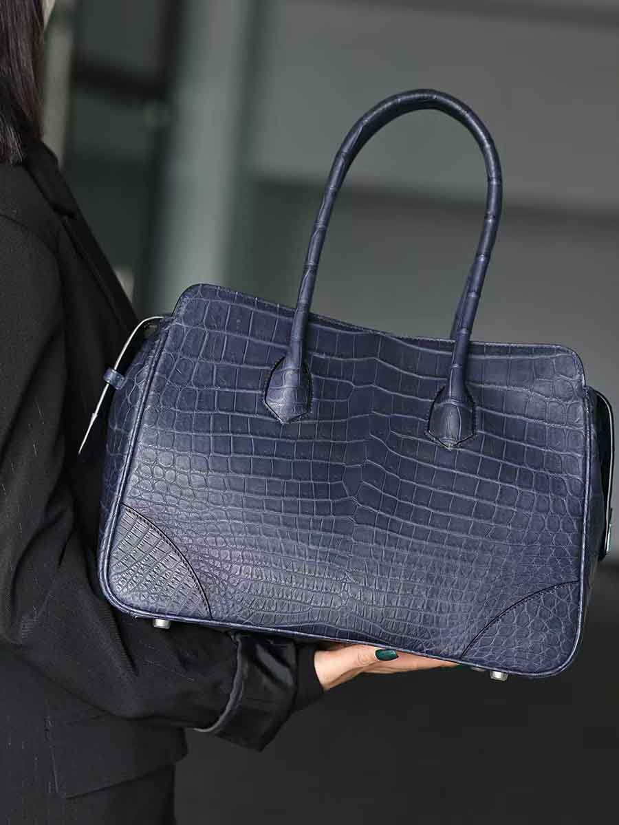 自主研发新款,女士手提包,深蓝无涂鳄鱼皮,客订出货。
