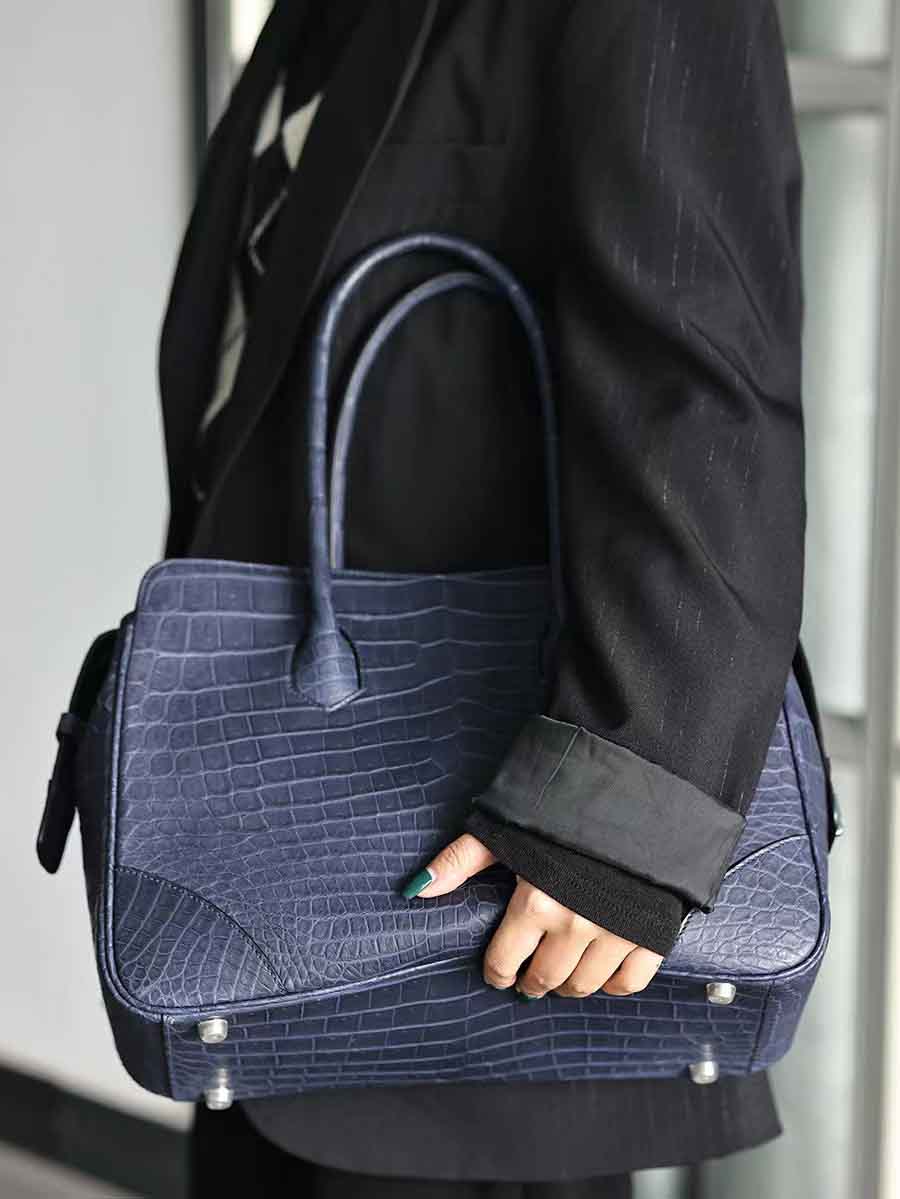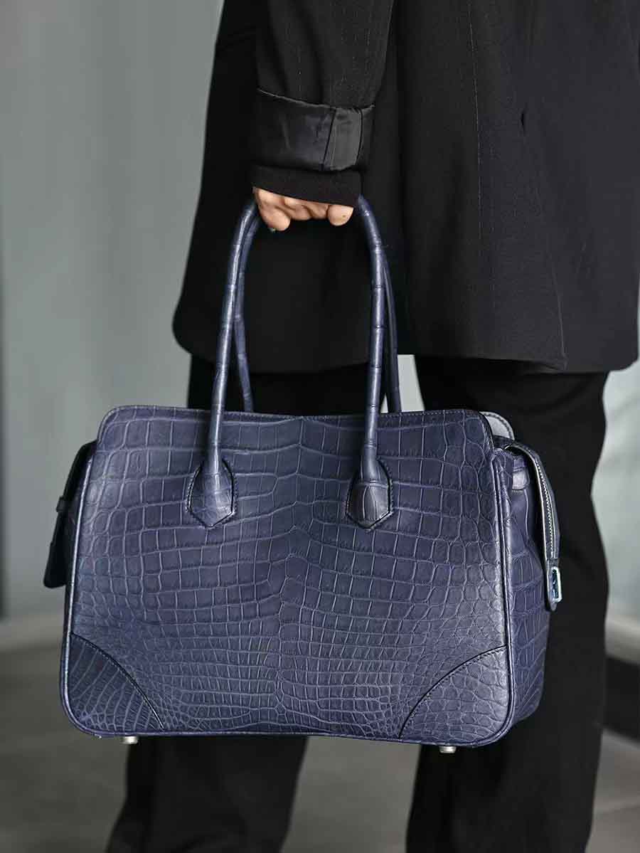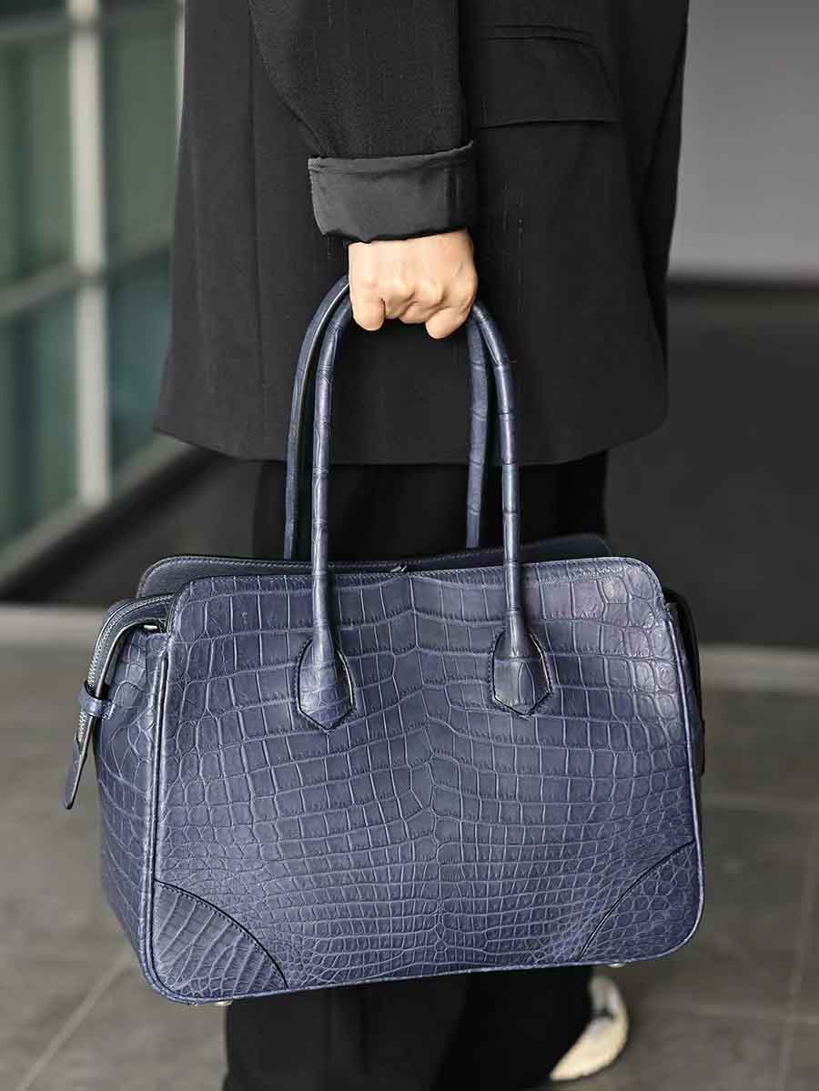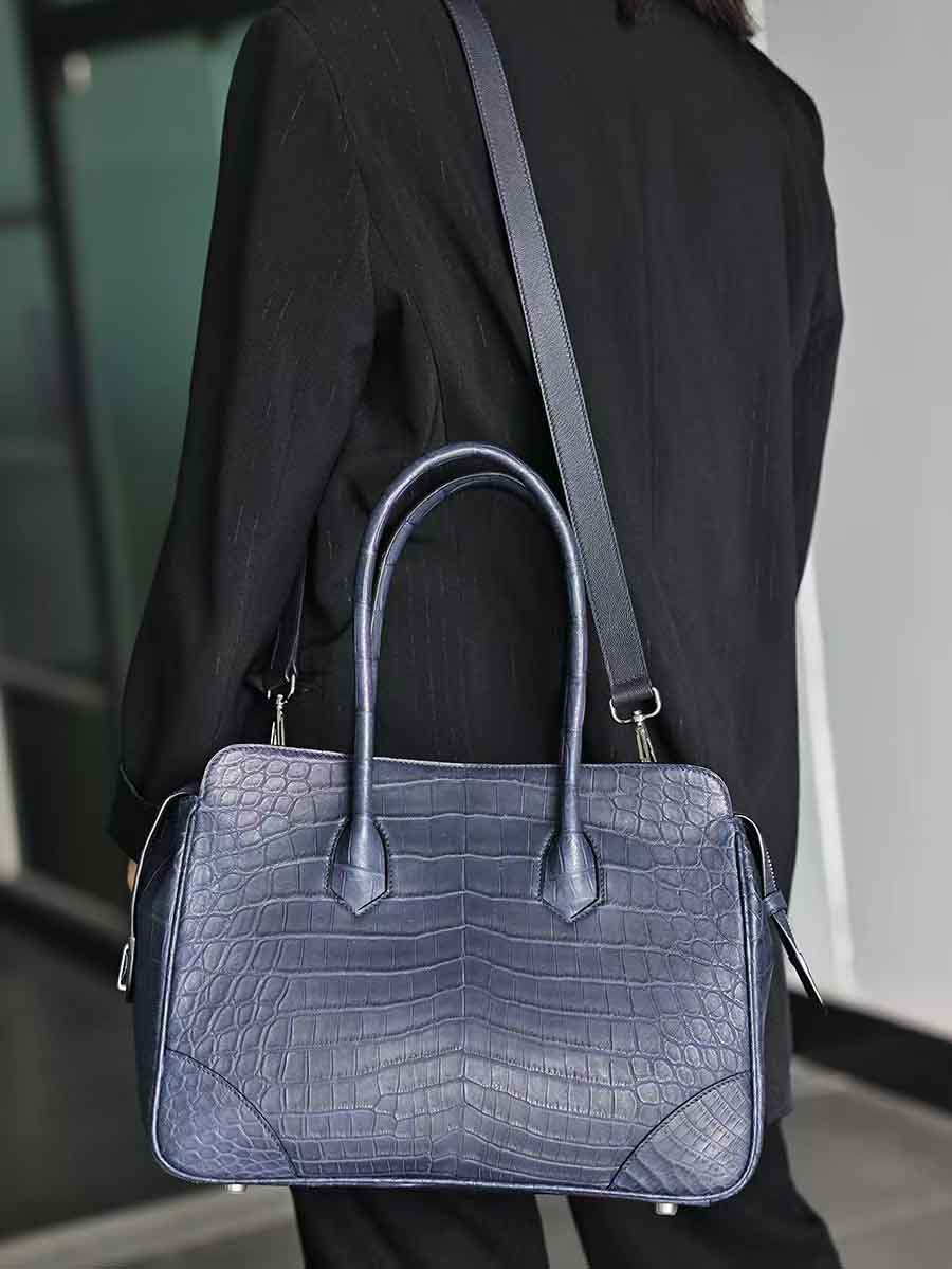 自主研发新款,女士手提包,深蓝无涂鳄鱼皮,客订出货。