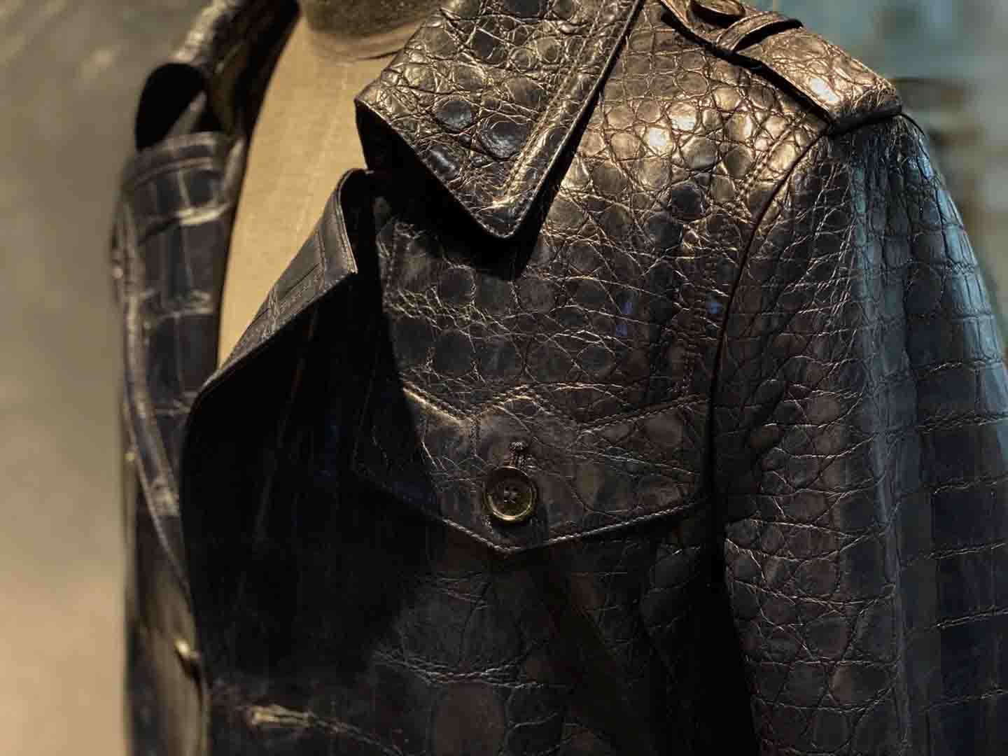 鳄鱼皮衣定做#擦色系男士#中长款皮衣现货50码 ,擦色鳄鱼皮中款风衣订制厂家 微信联系95506803