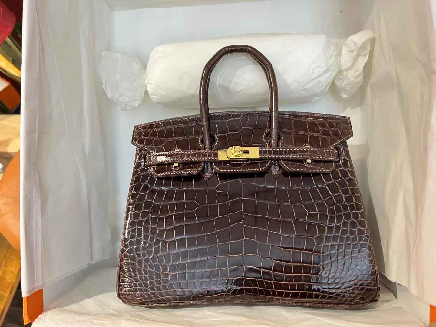 鳄鱼皮亮面乌木色 birkin25 金扣,#2023年度流行色#之乌木色 姑娘们,当你们觉得手上黑色包袋有点多的时候,应该尝试乌木这种暹罗鳄深邃的咖啡色。