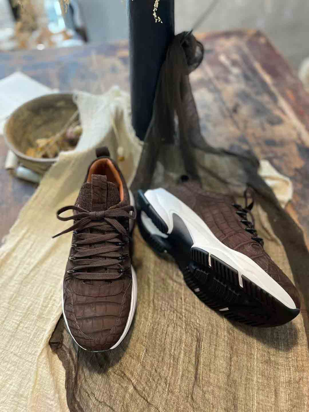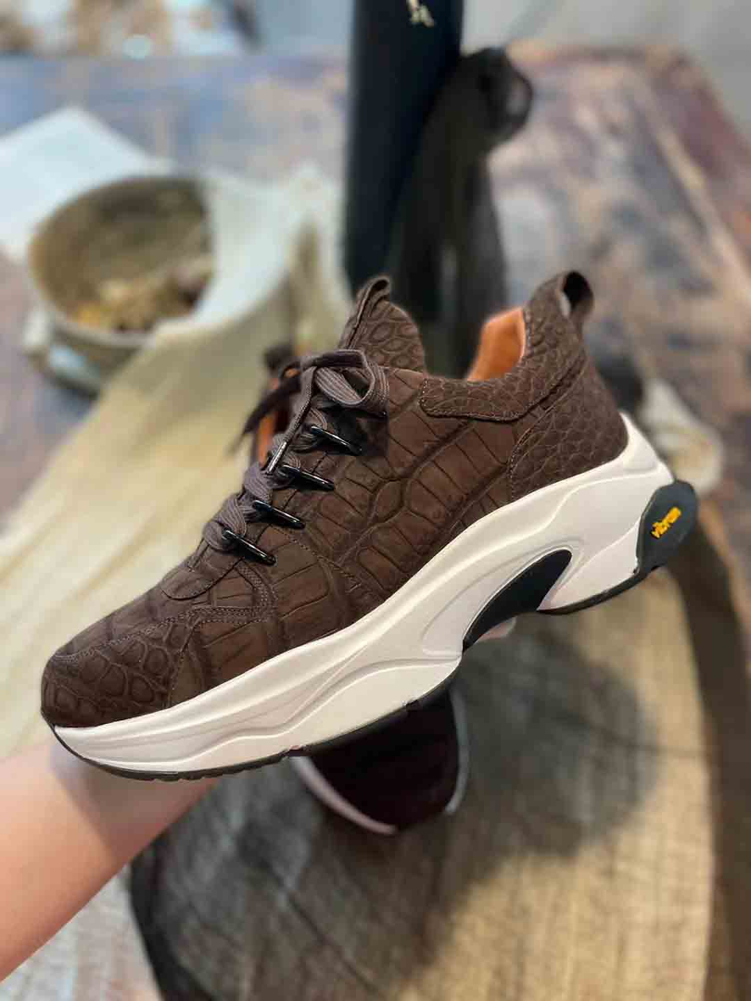 咖色鳄鱼皮休闲鞋订制,鳄鱼皮休闲运动鞋预约工厂定制微信联系 95506803