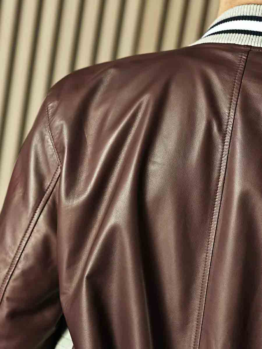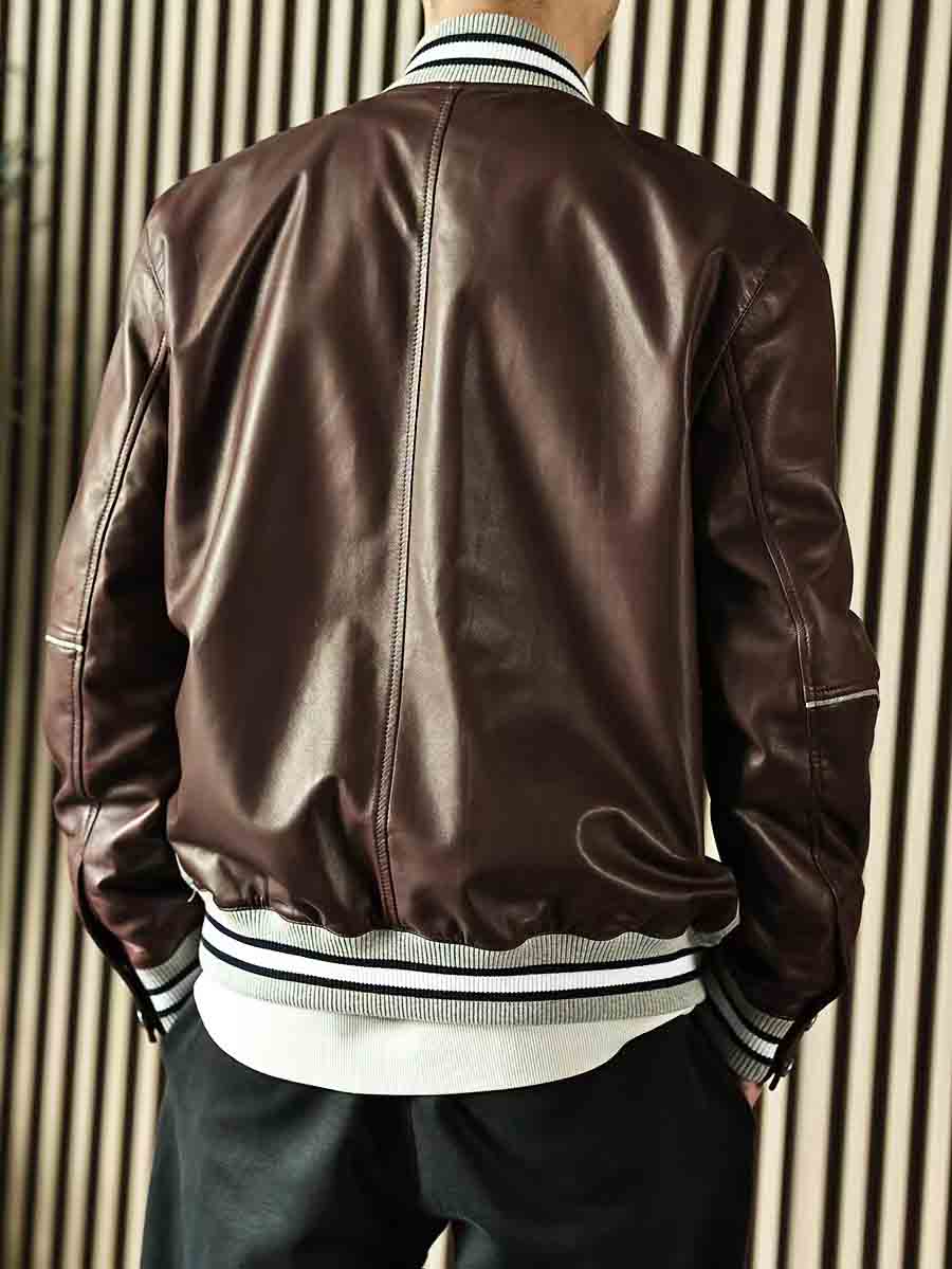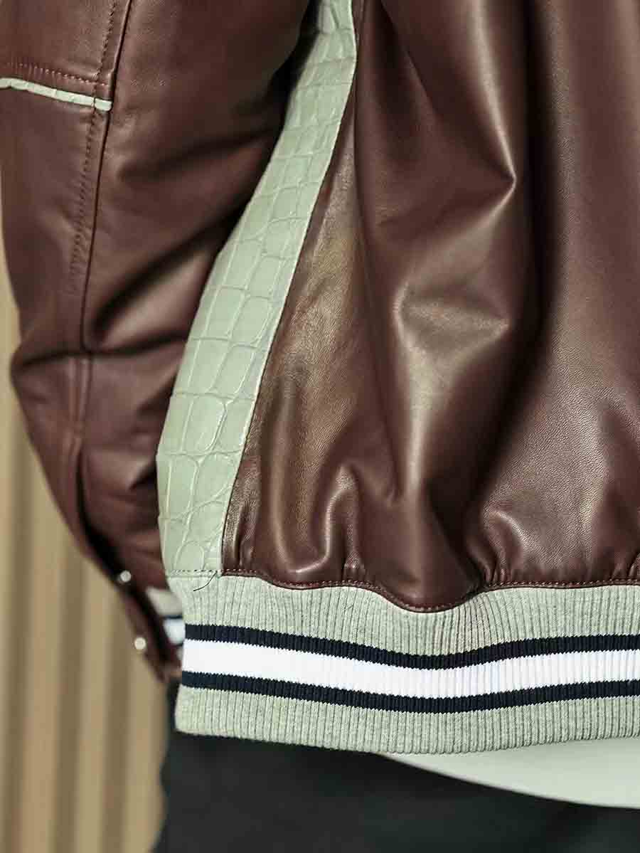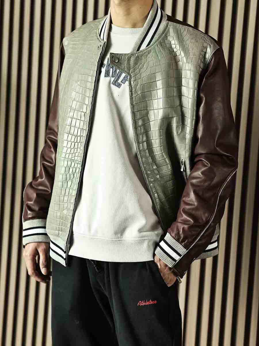 拼皮夹克,灰色鳄鱼➕酒红色羊皮,柔软舒适的同时不失调。