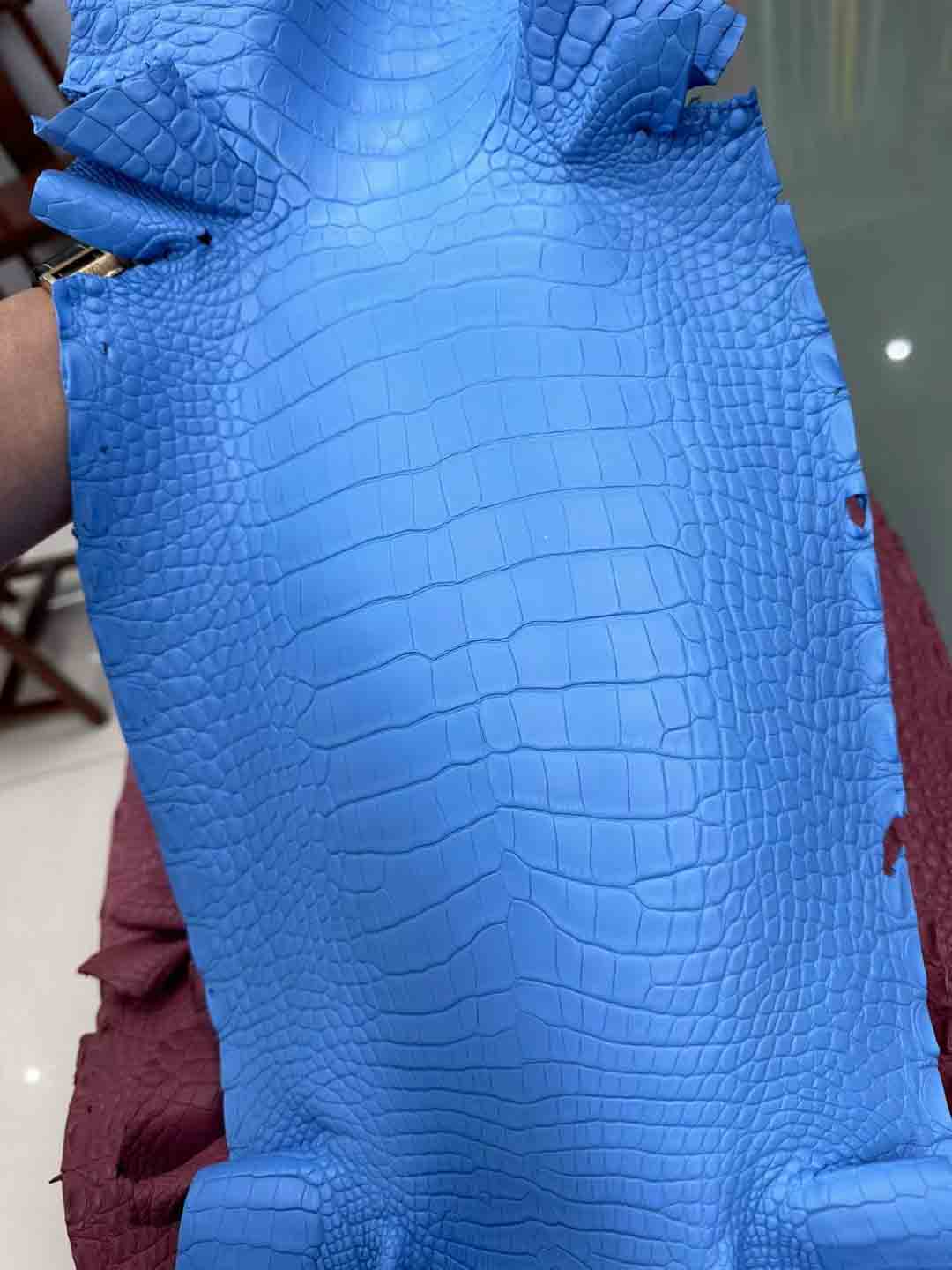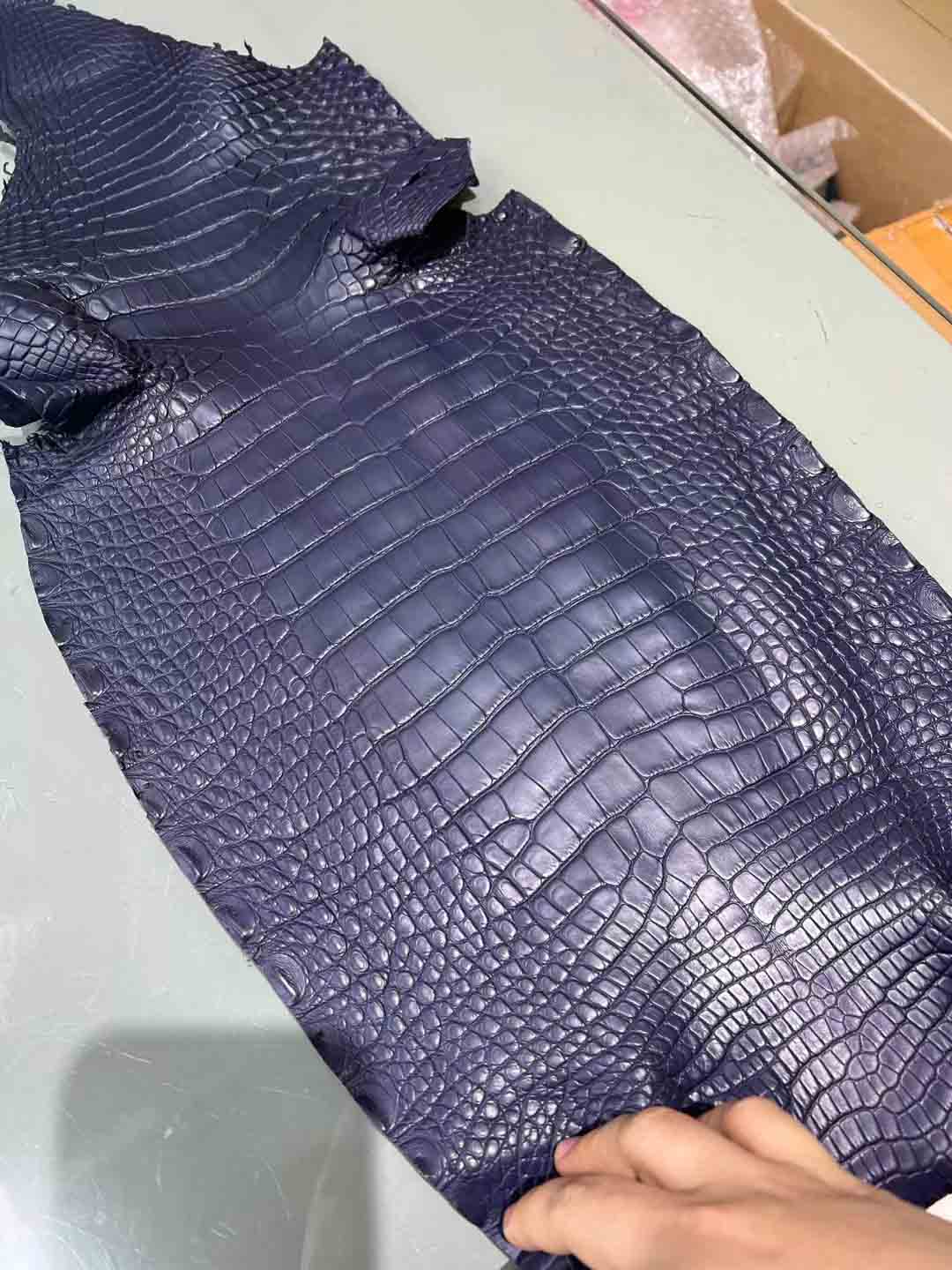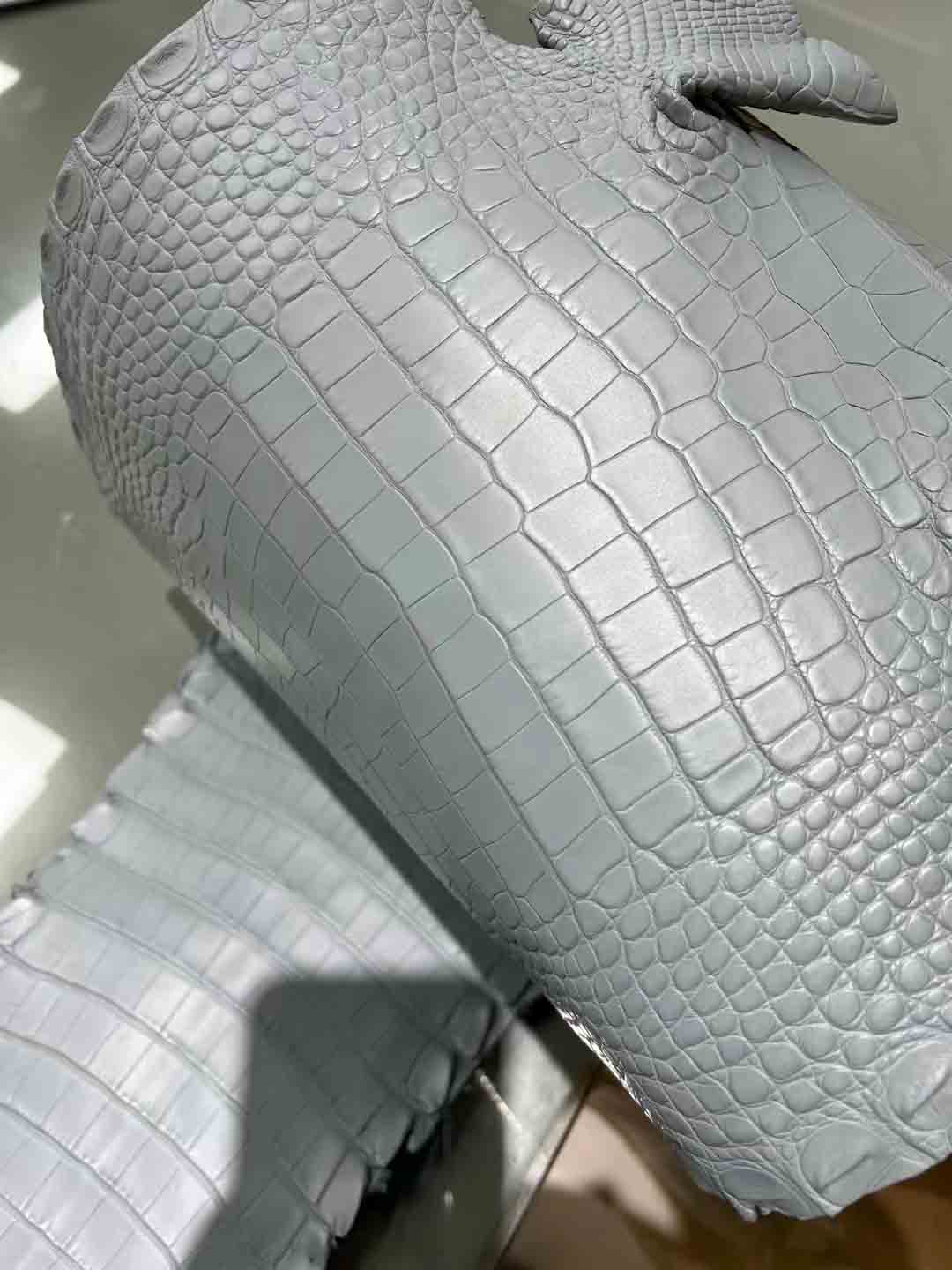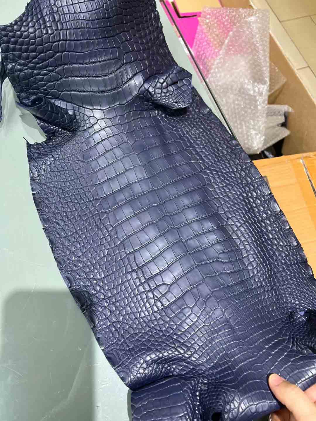 美洲鳄鱼皮 品种介绍:美洲鳄是所有鳄鱼品种里,其天然纹理最为方正,纹理极少杂纹,大小最为合适的鳄鱼品种,因此也颇受奢侈品皮具品牌的青睐。