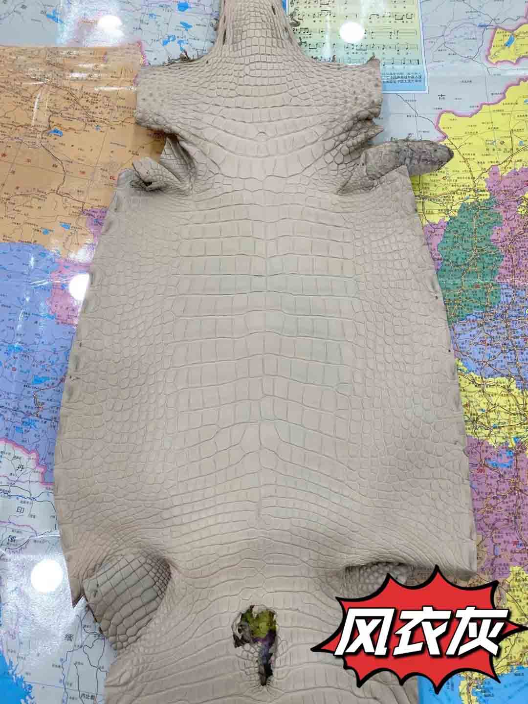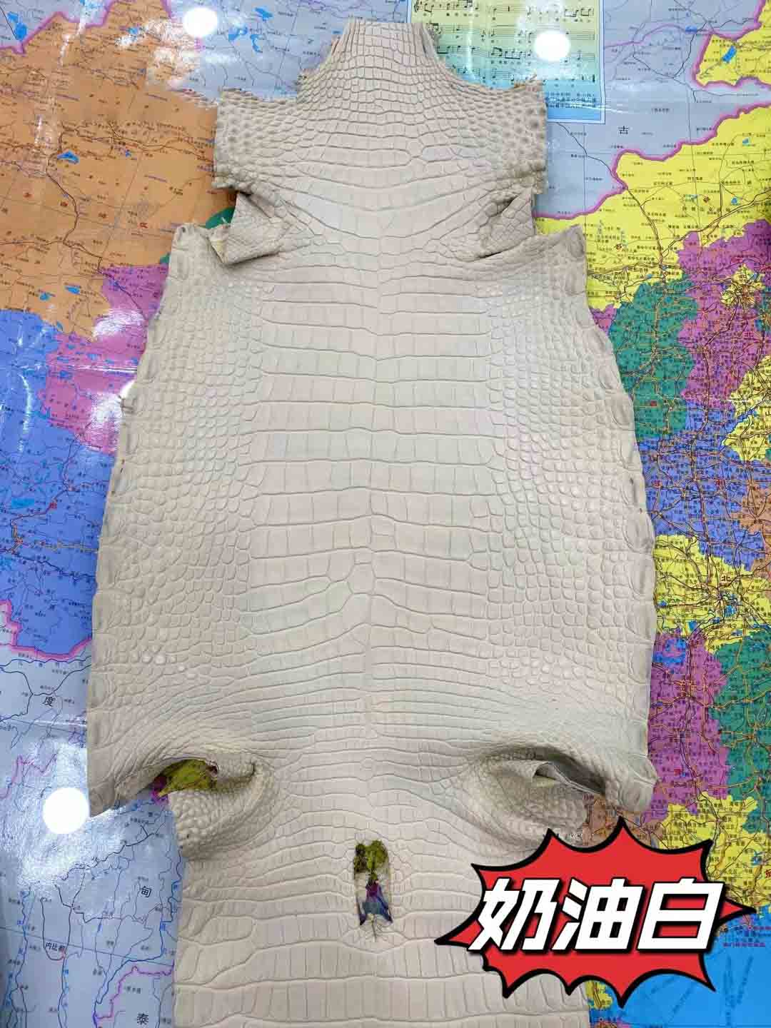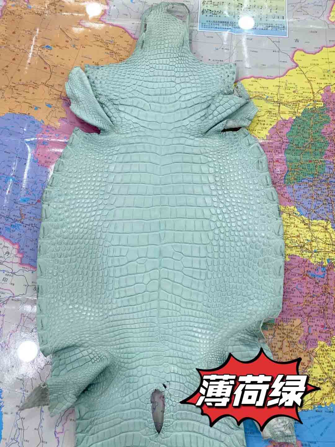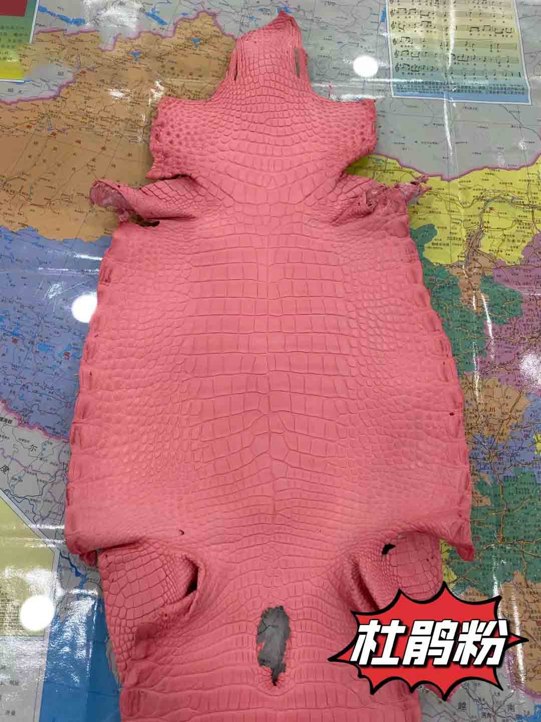 美洲鳄一般就是指密西西比鳄短吻鳄。其气质竹节纹整齐漂亮,与圆纹部分界线清晰,圆纹密集而且比较小。没有气孔,泄殖孔上方有明显裂痕,气孔和裂痕是这个品种的重要标志。皮料适合做箱包,尤其适合制作小件皮具,优于其他品种,特别能体现出美洲鳄的魅力,尤其是制作表带,美洲短吻鳄是最好的皮料,虽然美洲短吻鳄鱼皮价格仅次于湾鳄,但在市场上也是相当昂贵高档的鳄鱼皮。