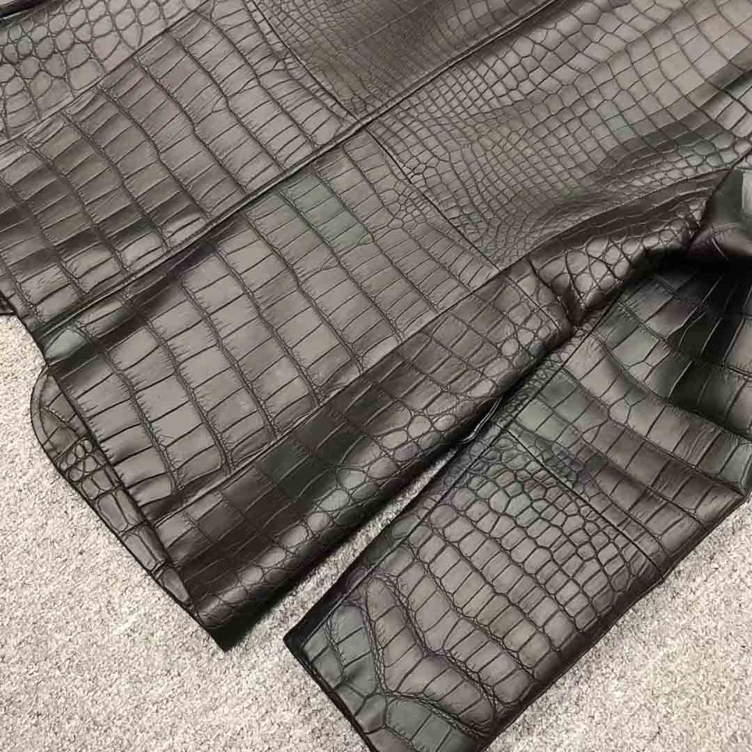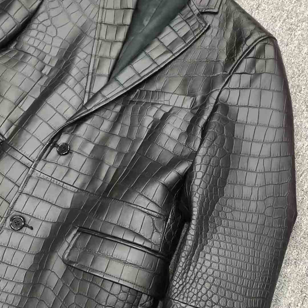 之所以称之为鳄鱼皮衣,是因为所穿着的这一款黑色外套,皮质面料的纹路是比较特别的。常见的鳄鱼皮衣面料通常都是格外光滑的,穿着的这一款鳄鱼皮衣选择了鳄鱼皮衣,也是皮质包包中常见的一种纹路,鳄鱼皮衣相对来说会更加有精致优雅感,而不是休闲风。