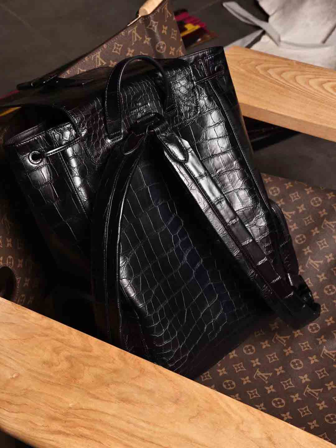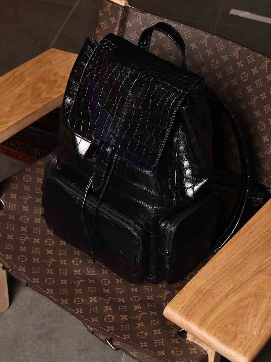Trio双肩背包,黑色中光柔软鳄鱼皮,实拍现货。