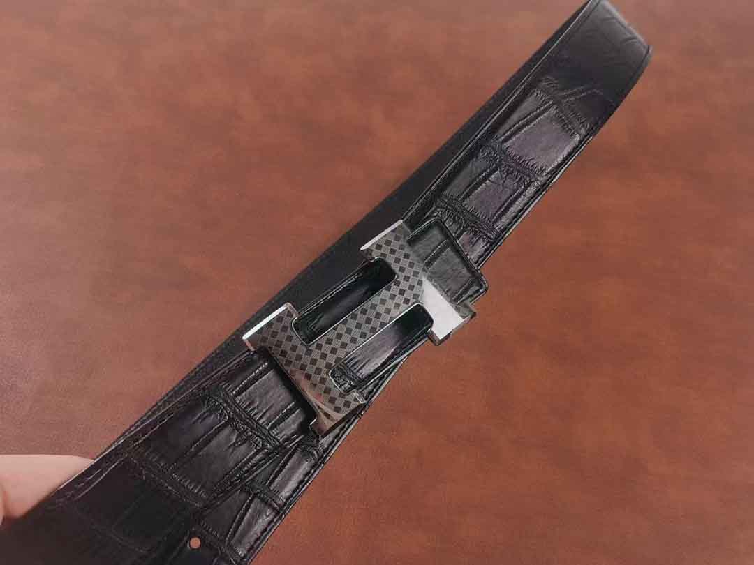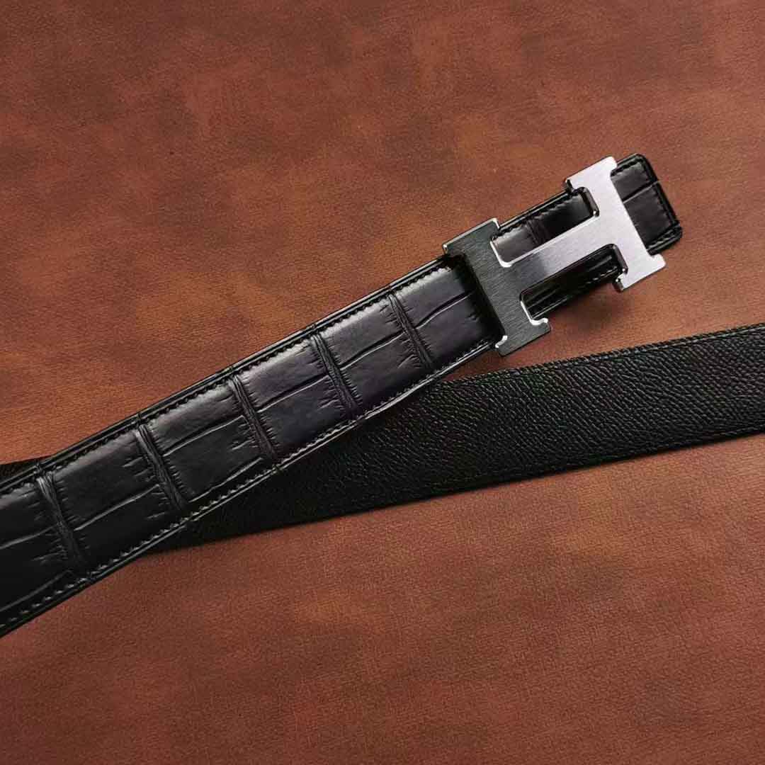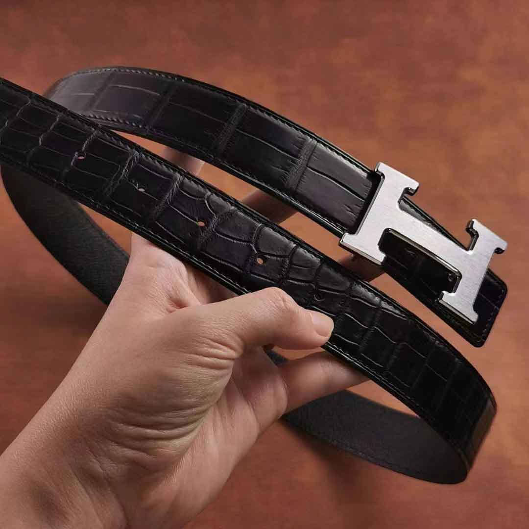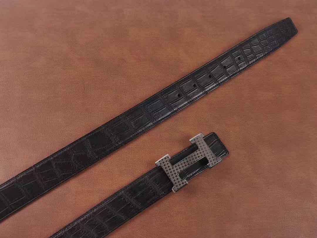客供钨钢扣头,一次订做2条湾鳄腰带。客人选择纯水染的HCP湾鳄服装革,服装革鞣制工艺应该是最贵的工艺了,既要没有覆盖性喷涂保证柔软自然的皮面,还要很薄的同时保证韧性和手感。选用意大利臀背植鞣作夹芯,底皮选用HAAS工厂的Epsom小牛皮,都是偏硬挺的皮料,皮带做好整体非常有弹性和密度。