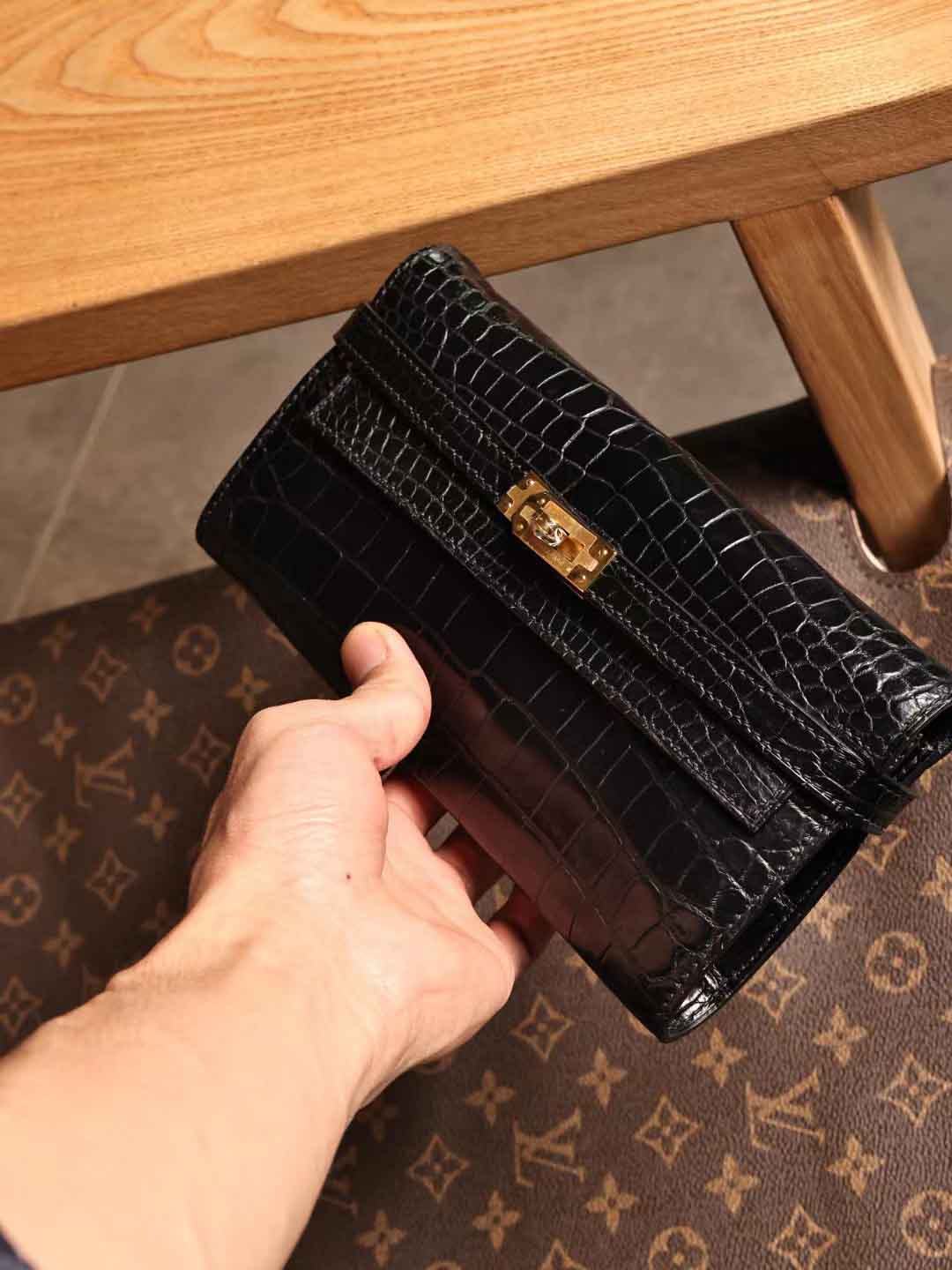 鳄鱼皮大手包时髦,鳄鱼皮小手包典雅。雅致的手包,不管黑色的还是黑色鳄鱼皮手包,只要搭配得体,都会为其主人增光添彩,衬托出非凡气质。