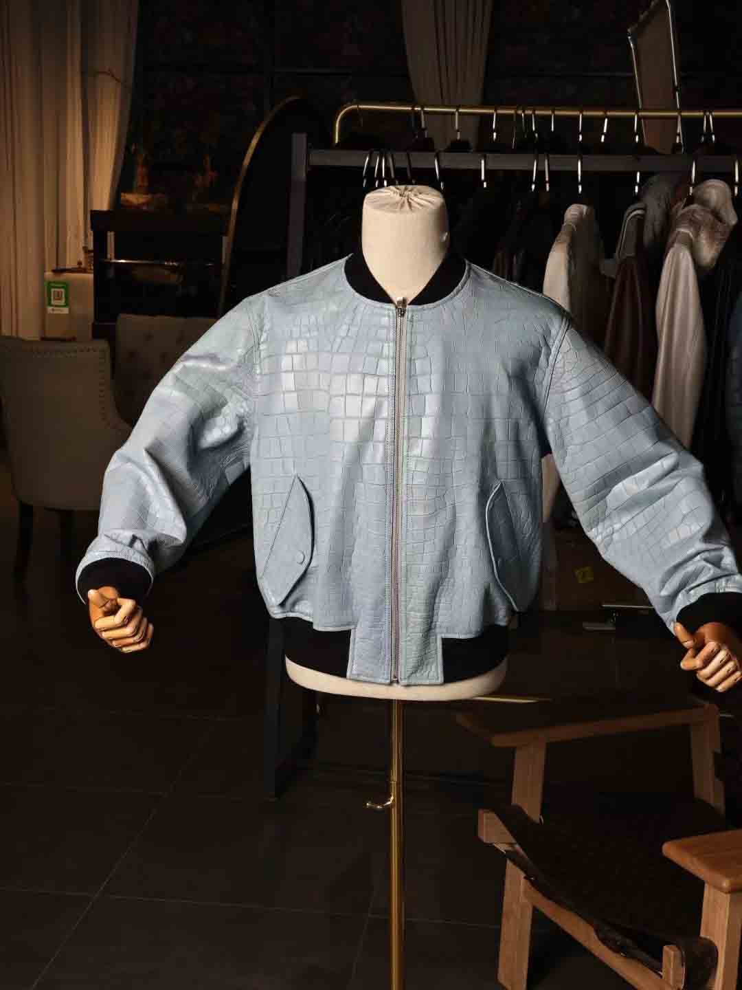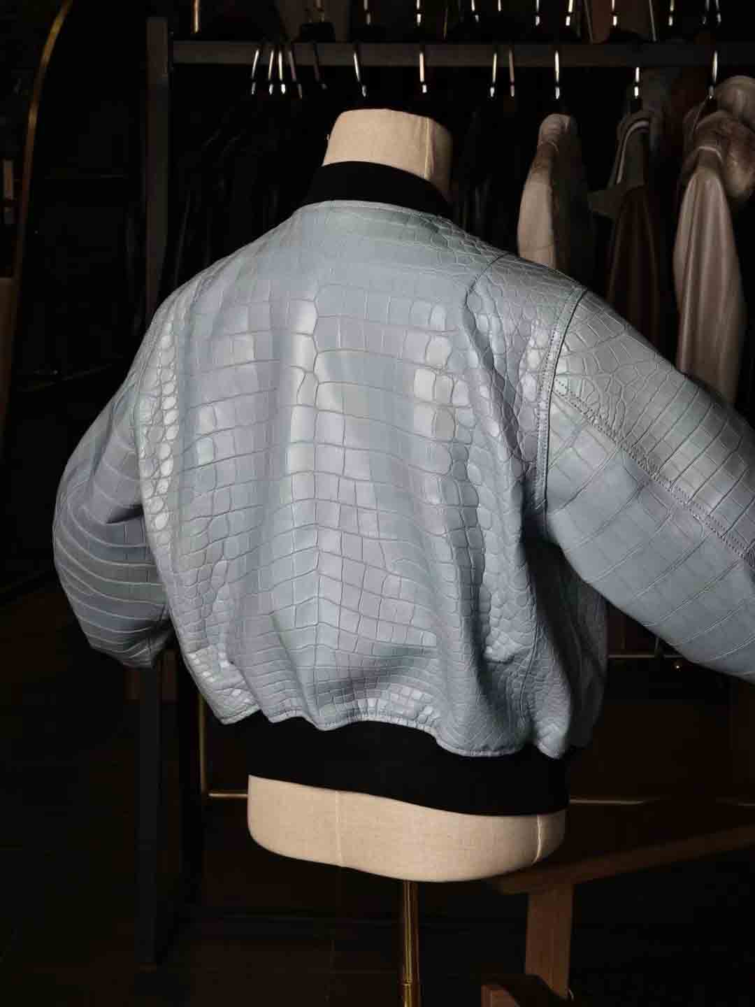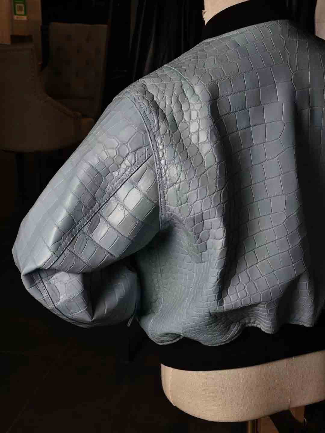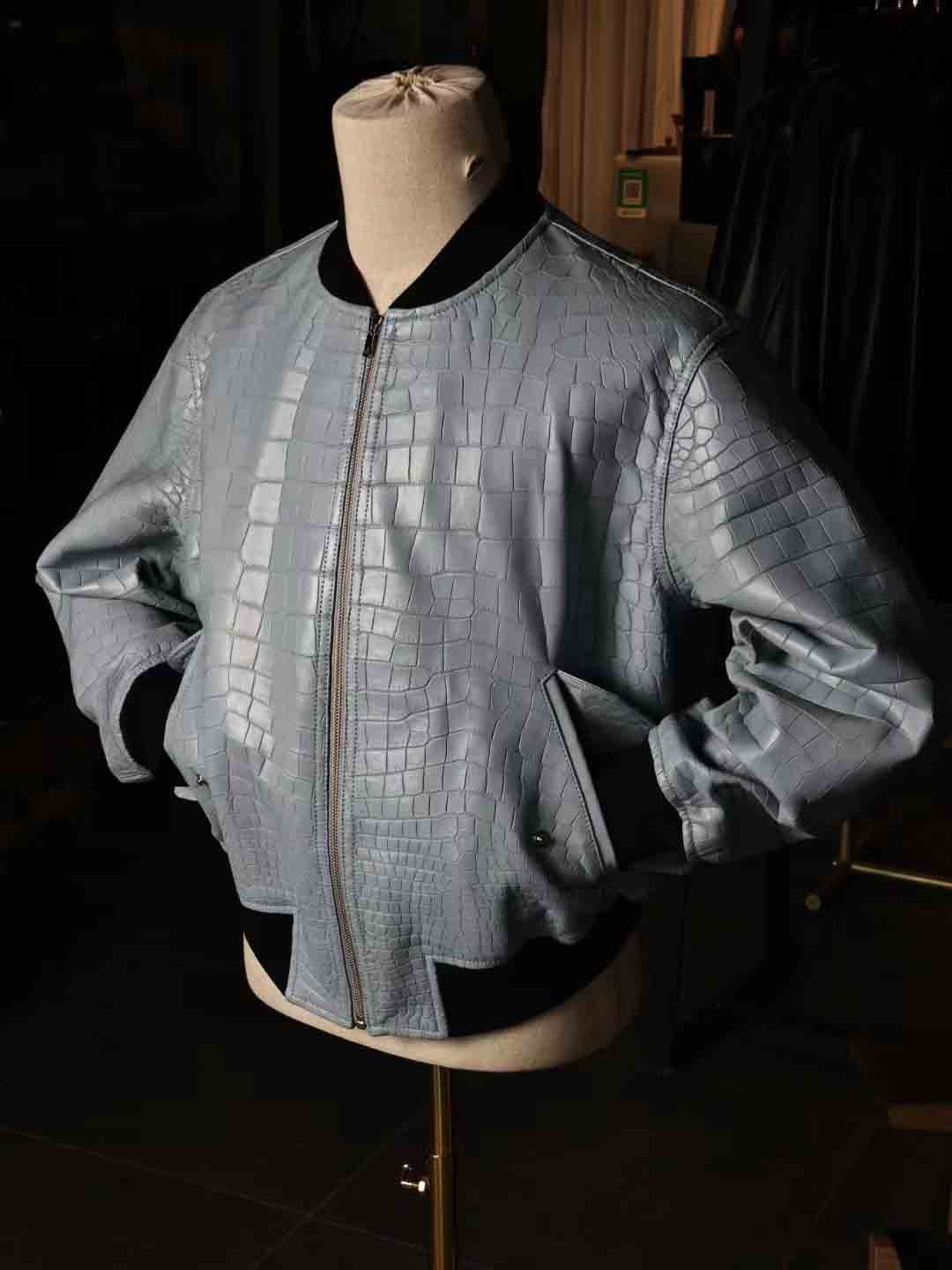 泡泡袖男女同款夹克,半腰短款,上身效果很棒,50码现货。鳄鱼皮泡泡袖皮夹克机车夹克订制预约微信 95506803
