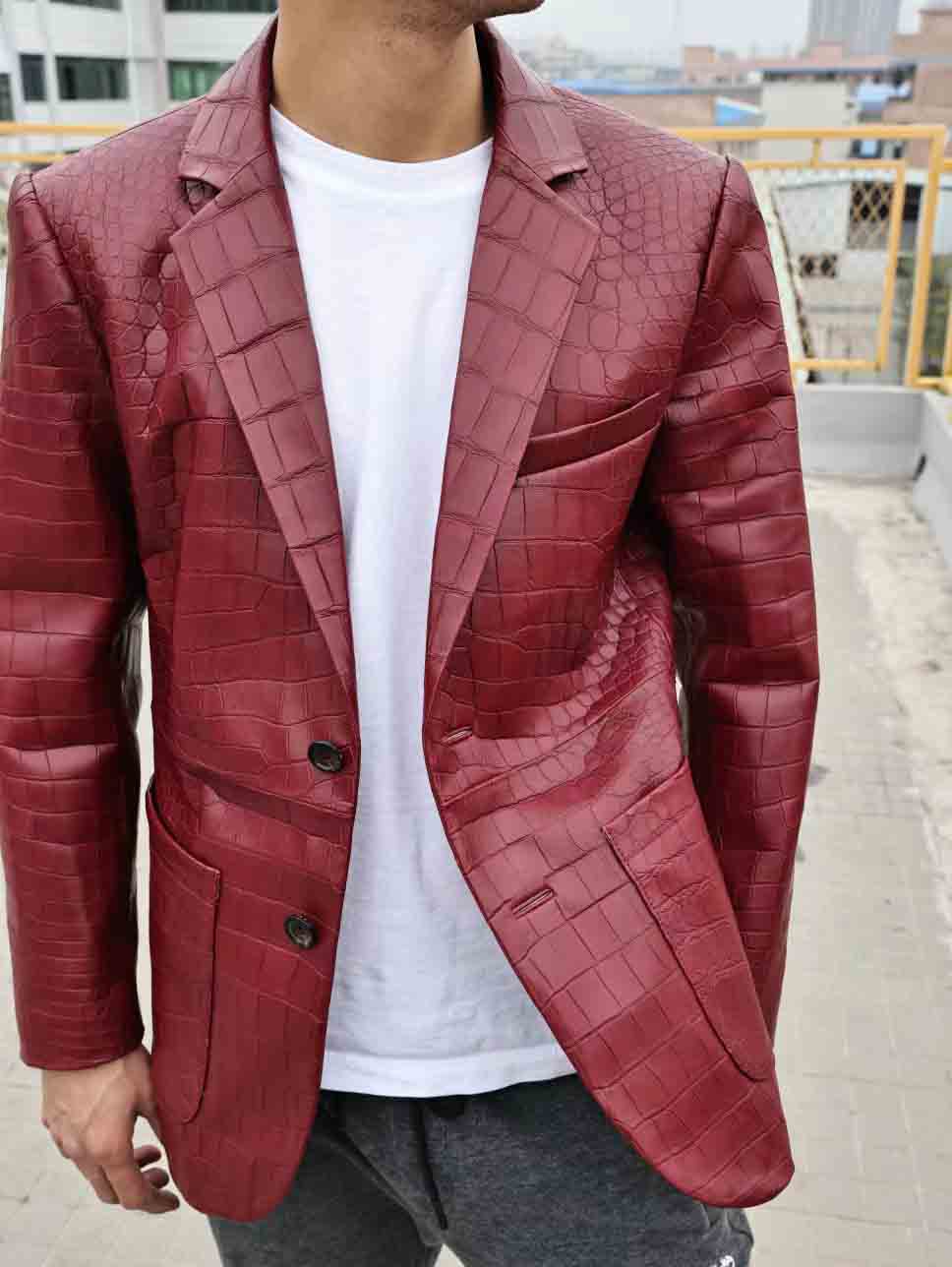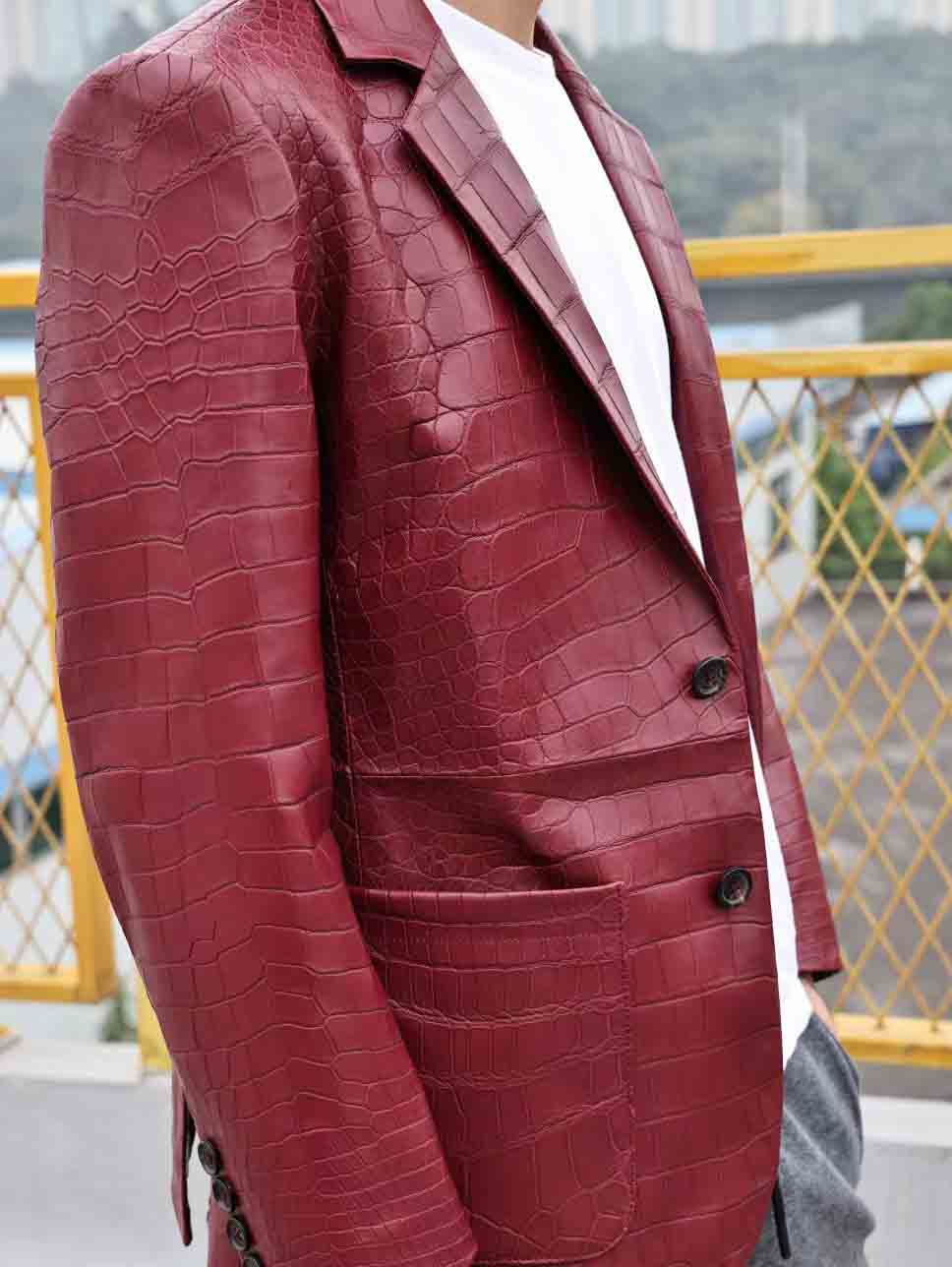 很多男士担心鳄鱼皮红色西服难驾驭又不日常,这可能是我们通常不会把红色与鳄鱼皮西服联系到一起的原因。