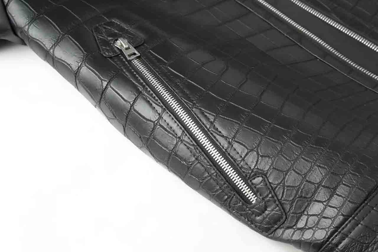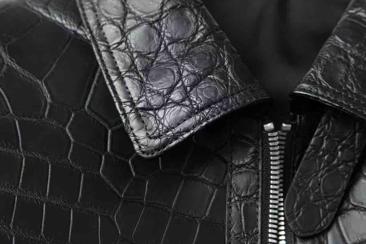 高端奢华鳄鱼皮夹克皮衣。湾鳄肚皮夹克皮衣,纯手工精工制作,高端品质,可以来图片和样版衣,我们有专业的设计师师傅、专业打版样版皮衣师傅、专业生产制作师傅团队,下单定了与我联系,高端私人定制,诚信赢天下,海纳百川。