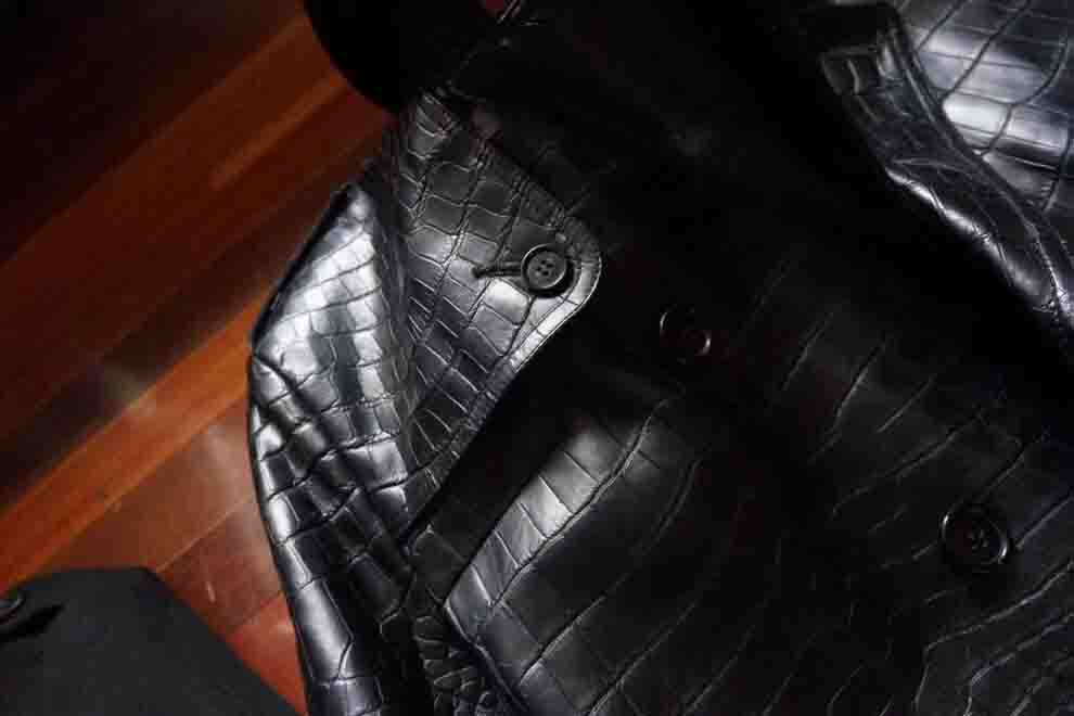 #定制【风衣】进口南非尼罗鳄鱼皮风衣款 黑色 中短款不过膝盖。微信联系 95506803