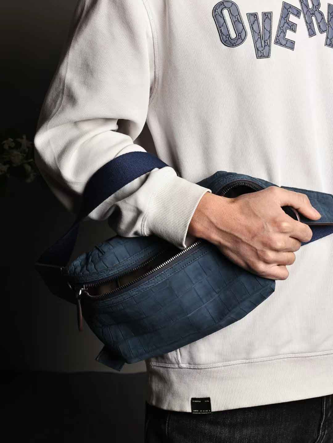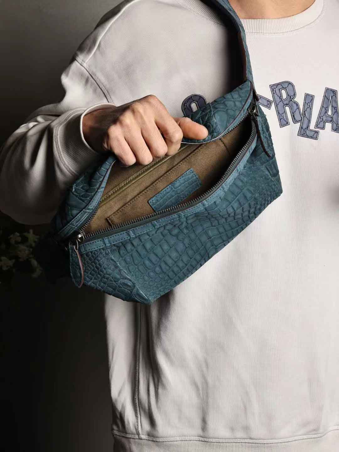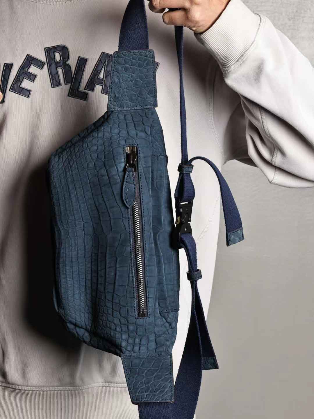 超软休闲胸包,蓝色磨砂鳄鱼皮,实拍现货。