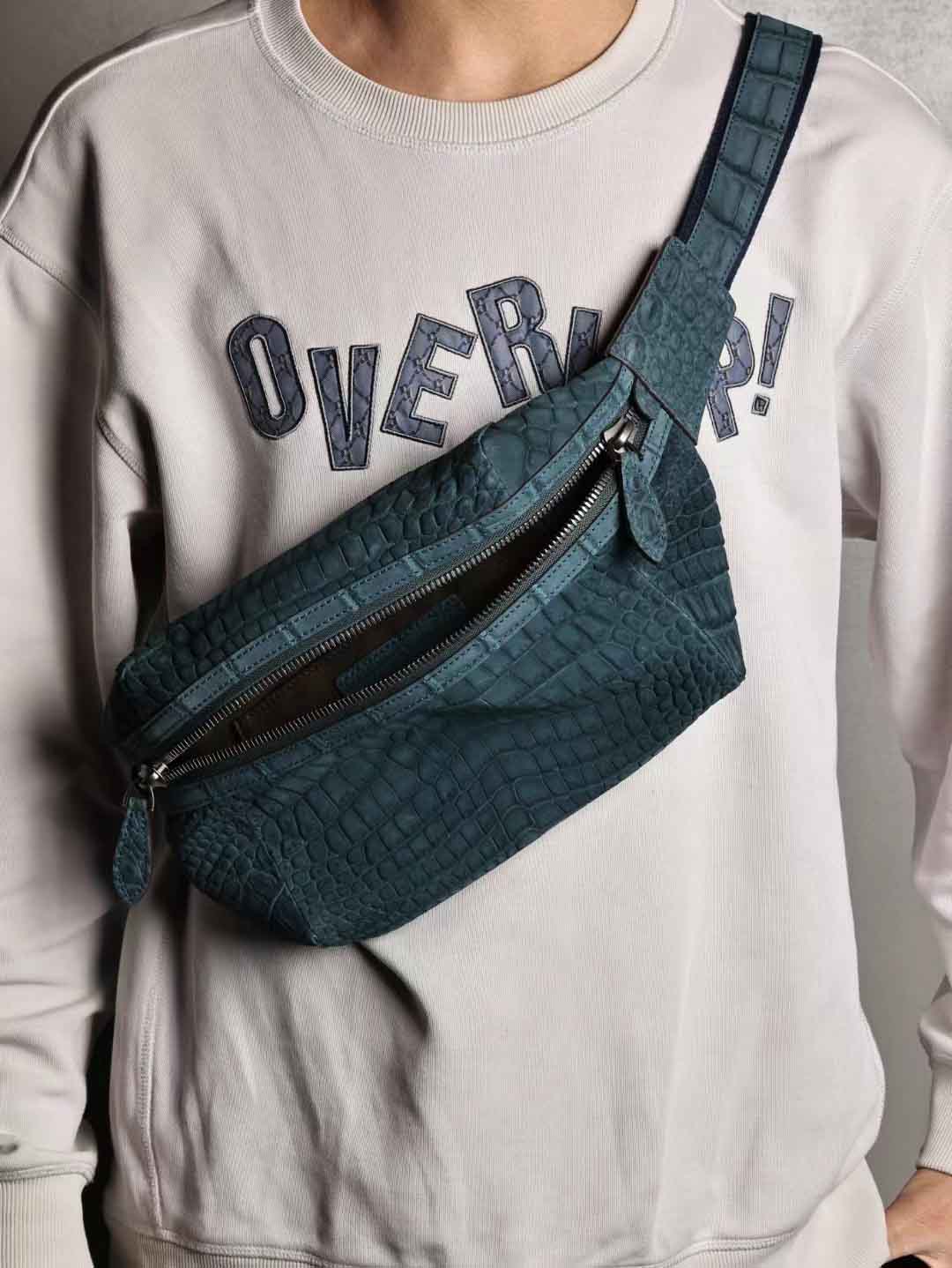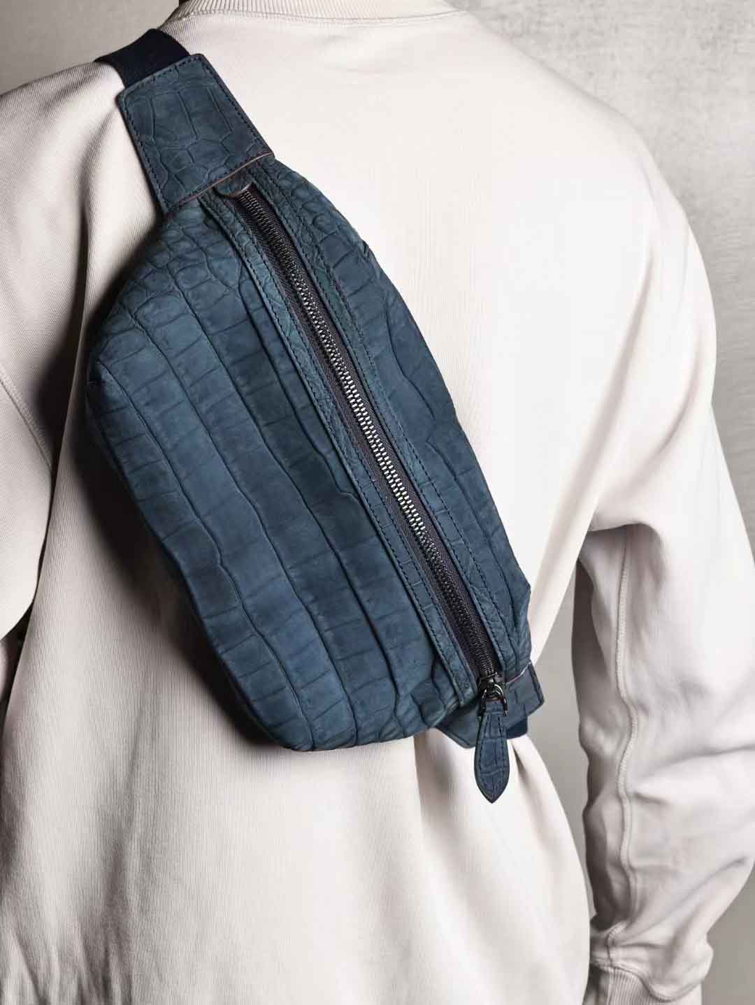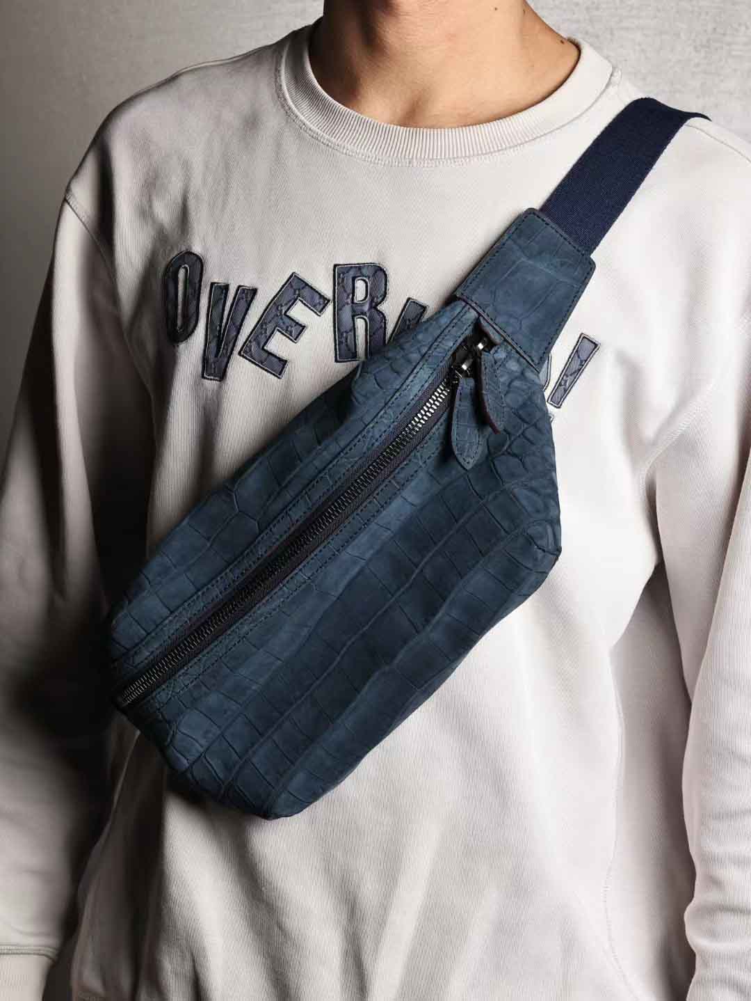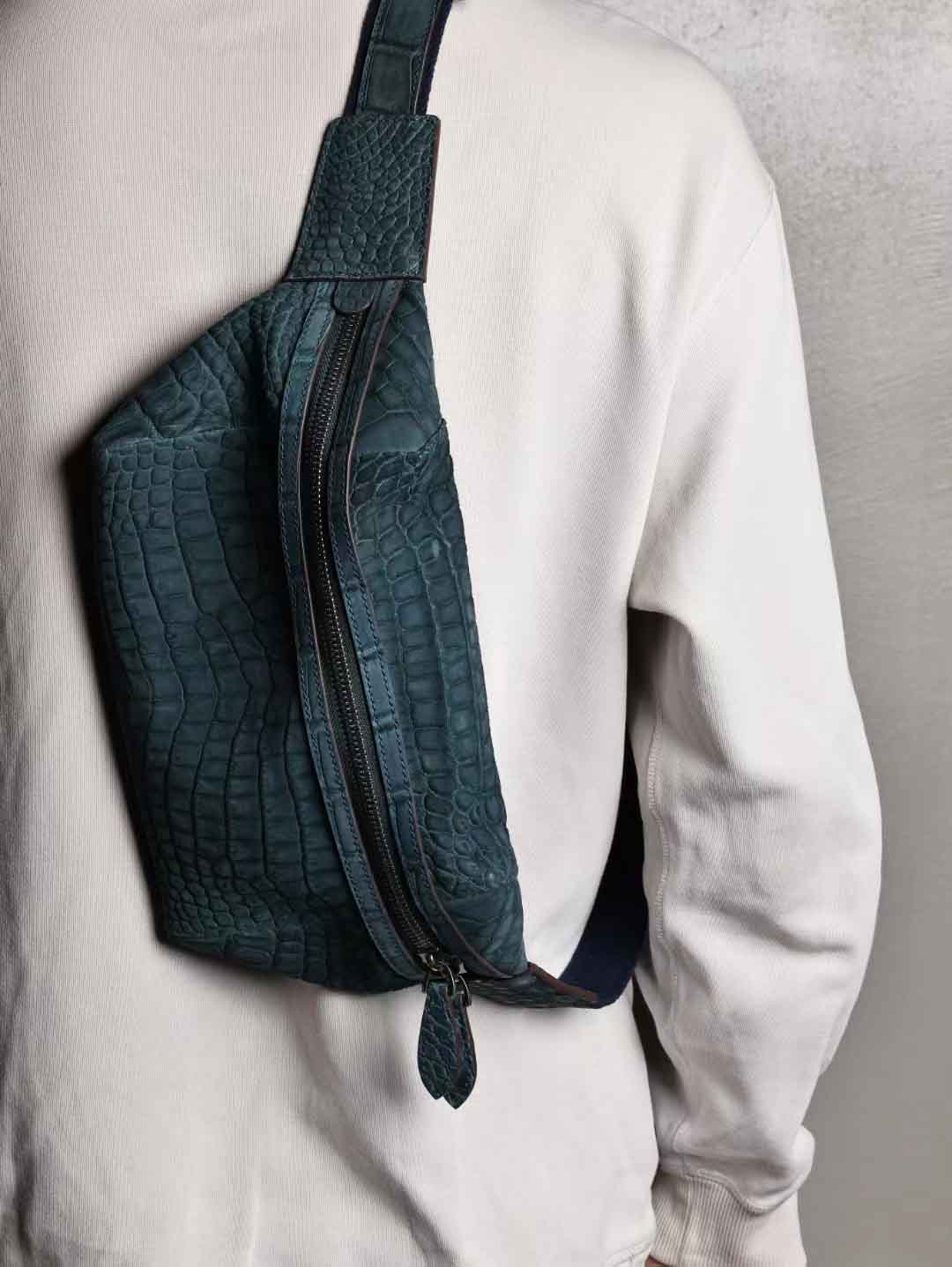 超软休闲胸包,蓝色磨砂鳄鱼皮,实拍现货。