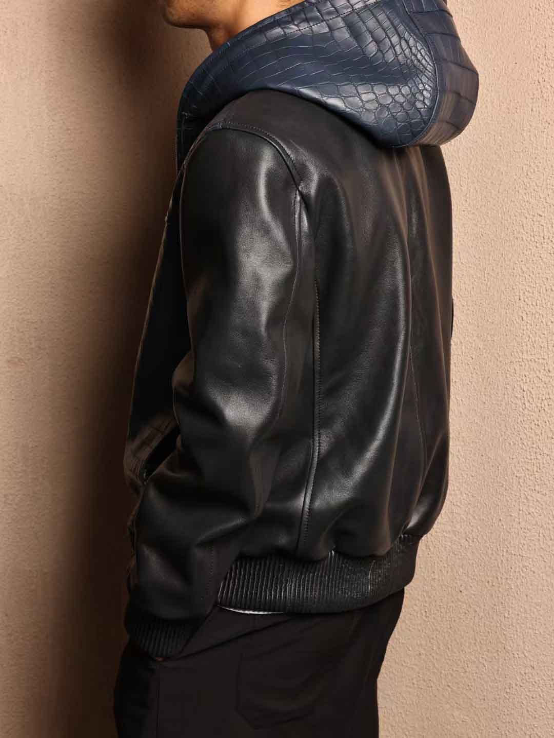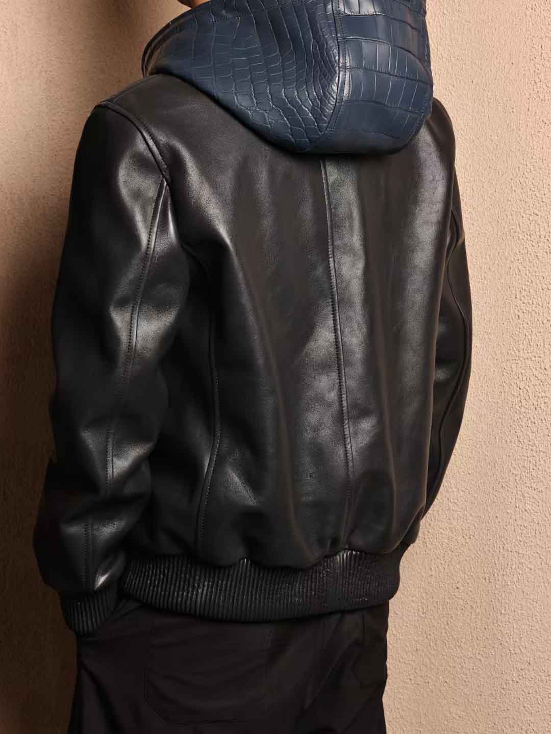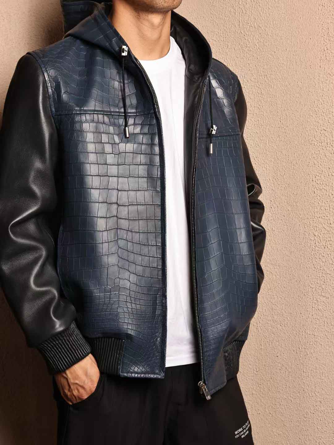 帽衫夹克,宝石蓝鳄鱼皮拼午夜蓝绵羊皮,52码实拍现货。