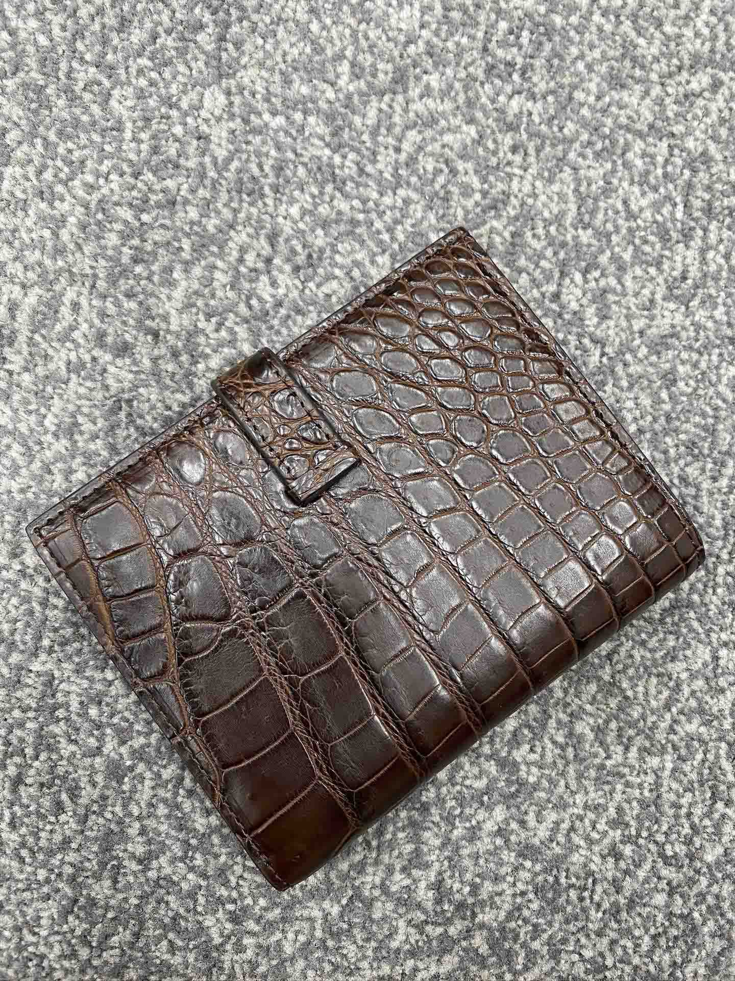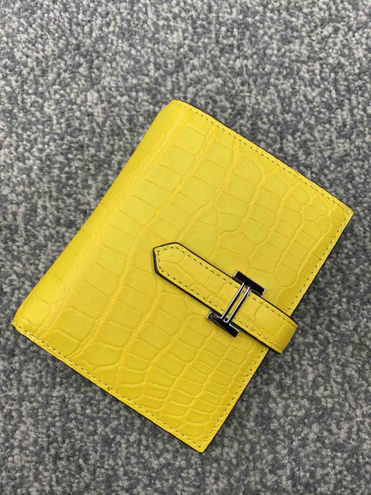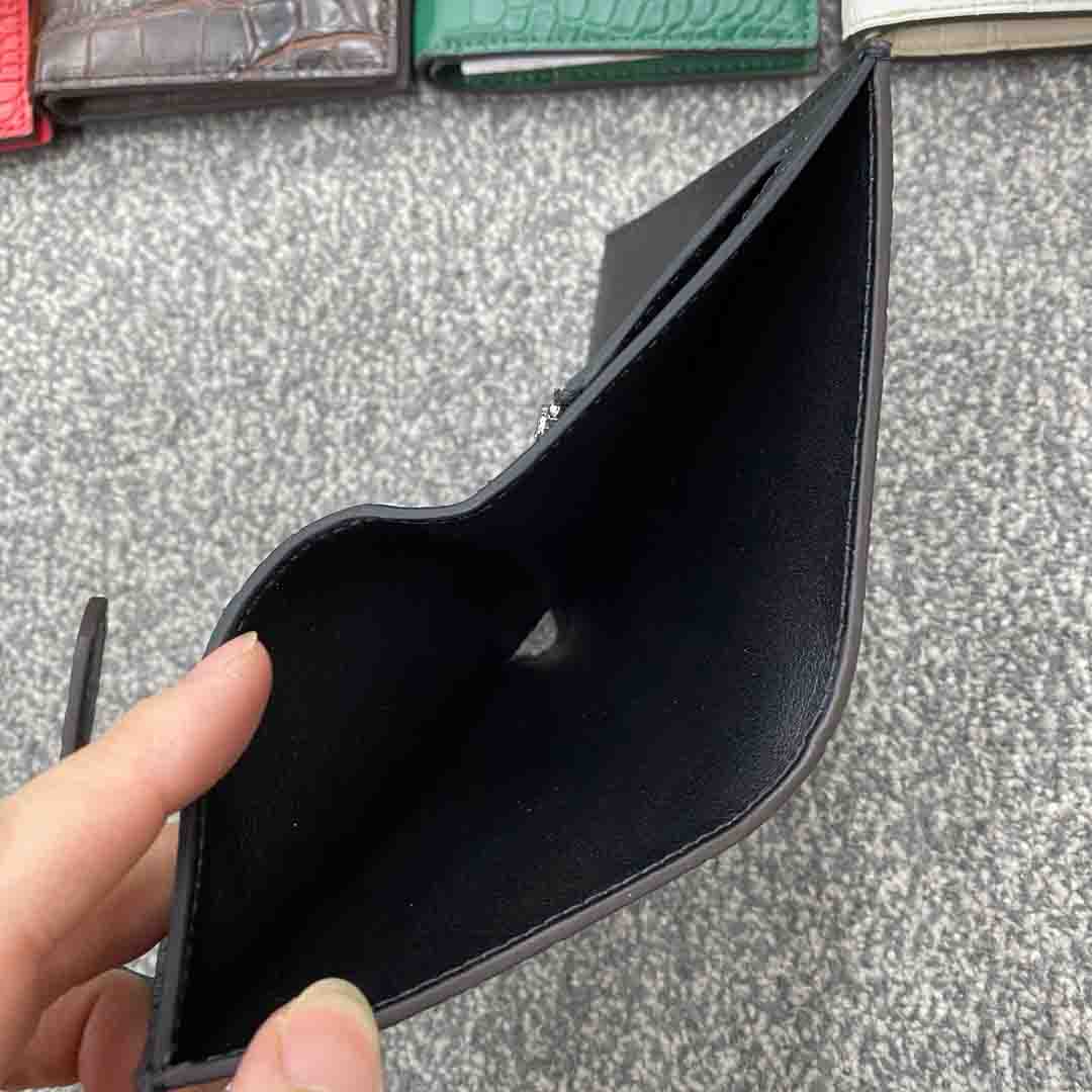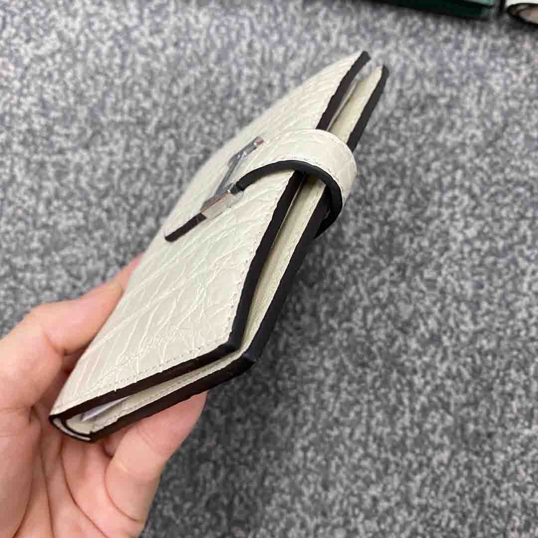 钱包系列沿用其造型,展露精巧的H形锁扣:中央横杆可向上抬起,松开翻盖,从而打开钱包。