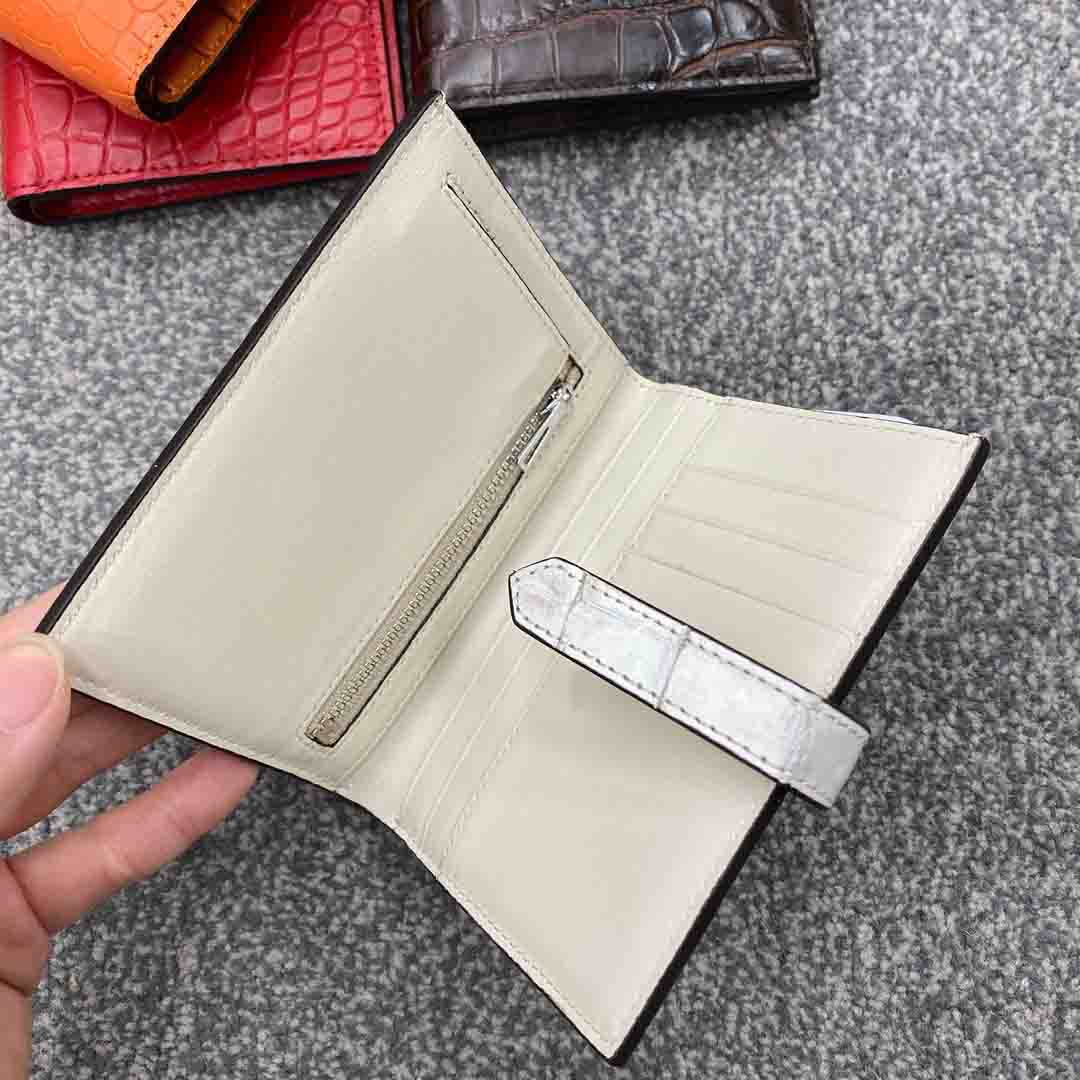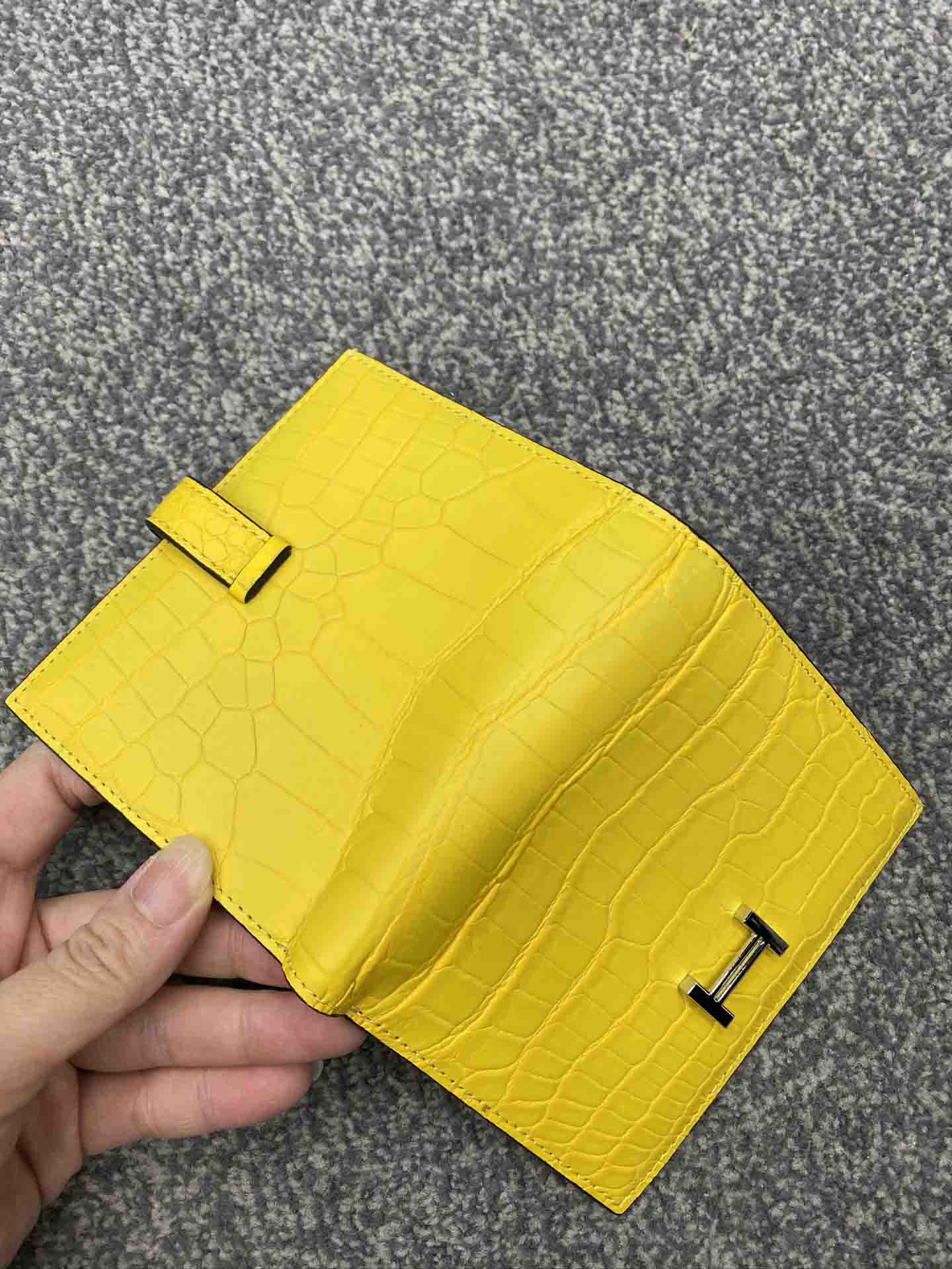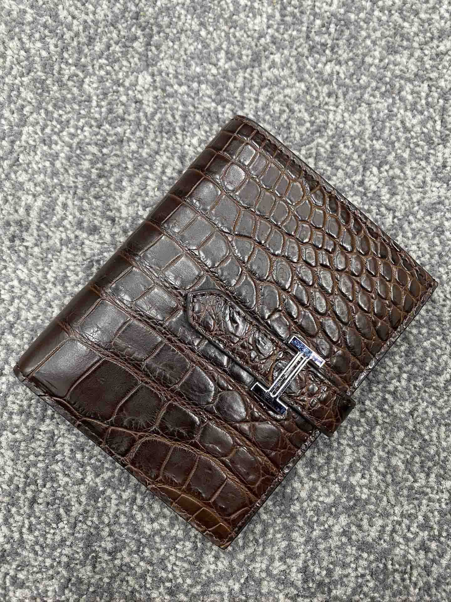 钱包系列沿用其造型,展露精巧的H形锁扣:中央横杆可向上抬起,松开翻盖,从而打开钱包。