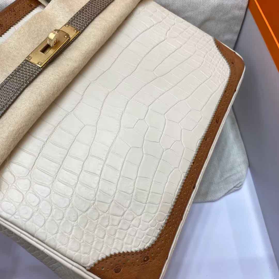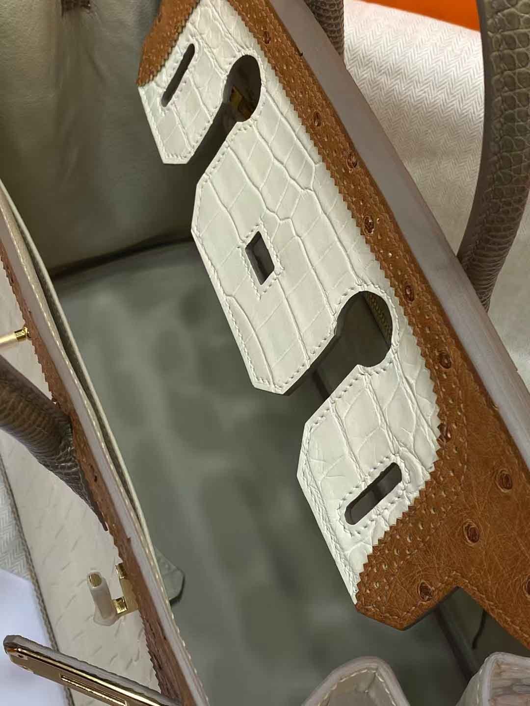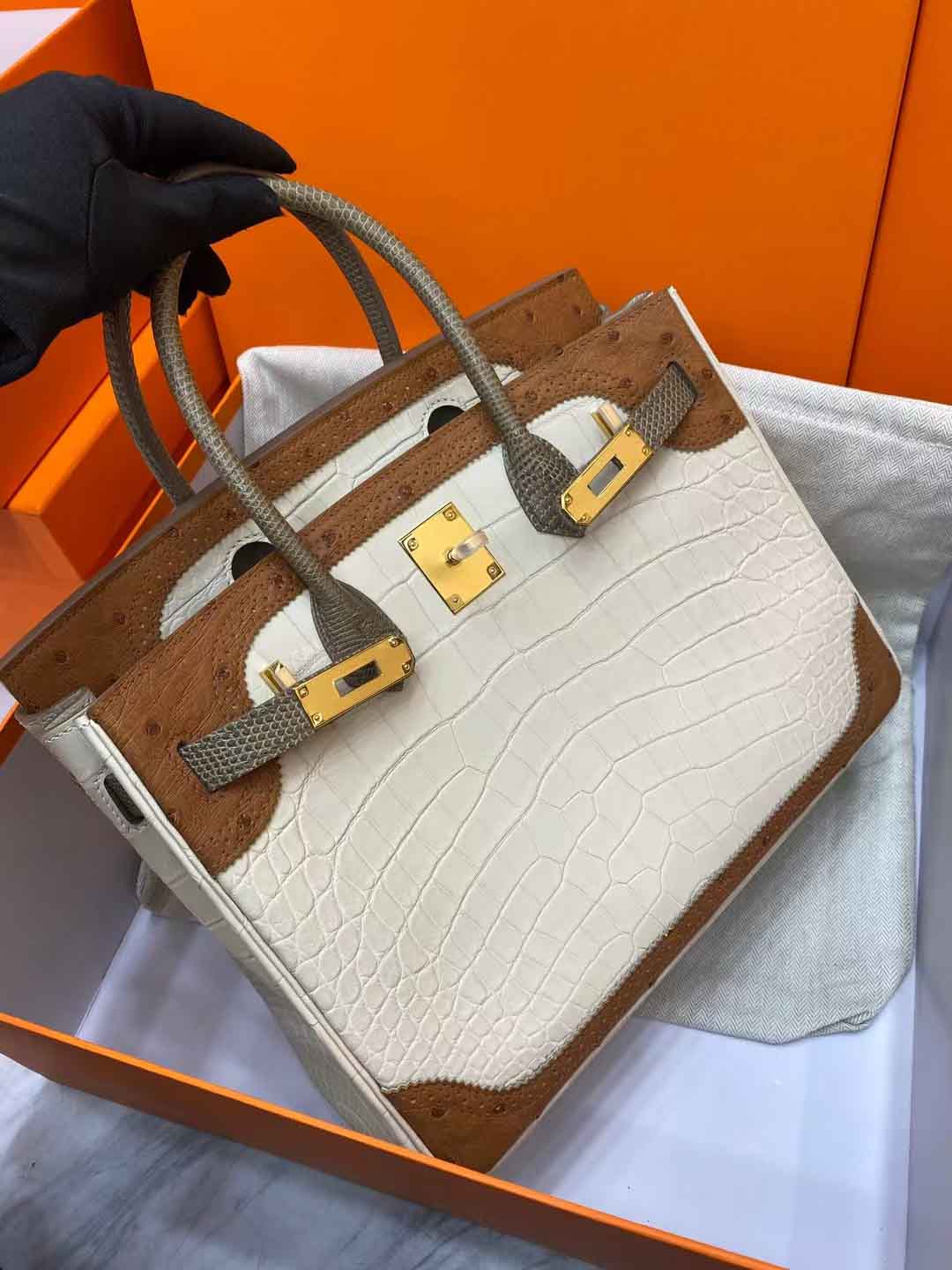 对版缝:Bk30cm 拼鳄鱼,蜥蜴,鸵鸟三拼色 银扣