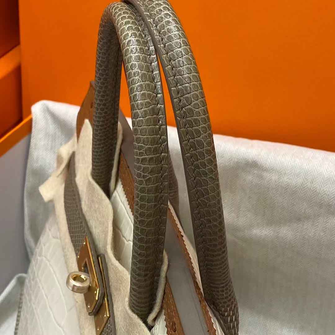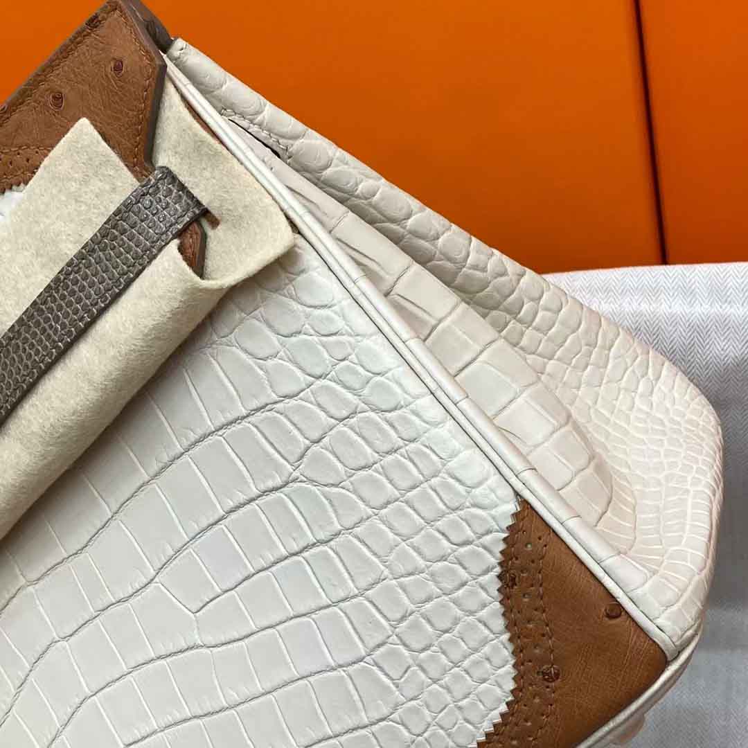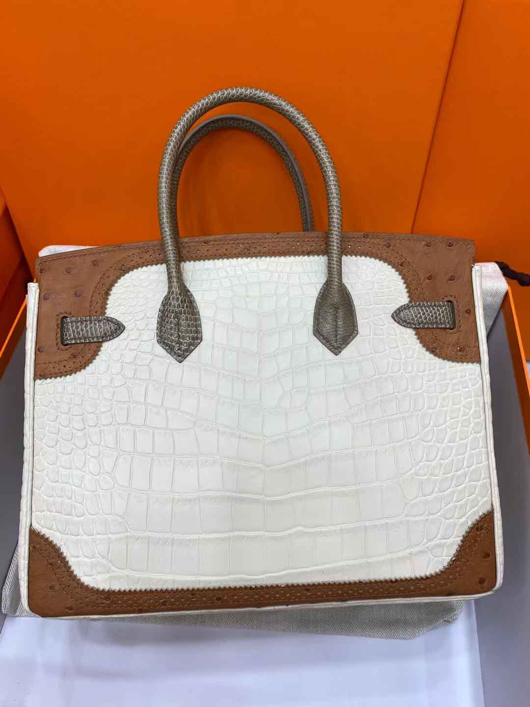 对版缝:Bk30cm 拼鳄鱼,蜥蜴,鸵鸟三拼色 银扣