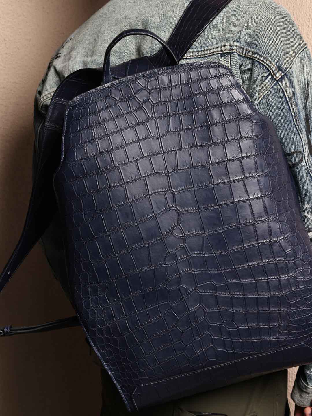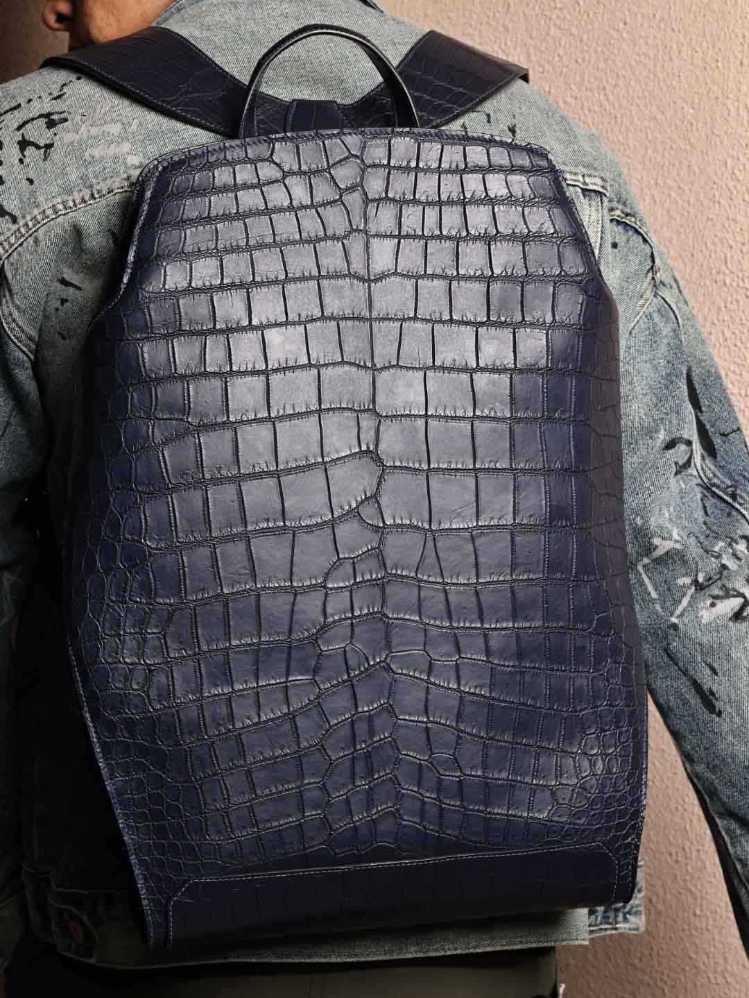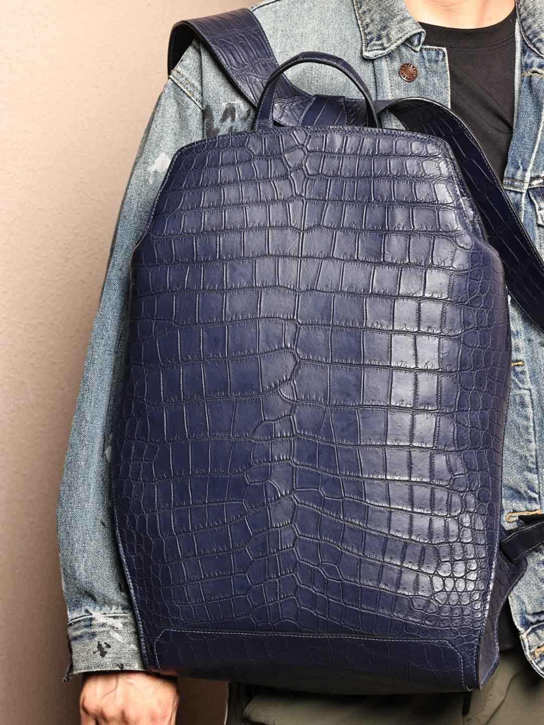 CityBack双肩背包,深蓝色哑光鳄鱼皮,客订出货。
