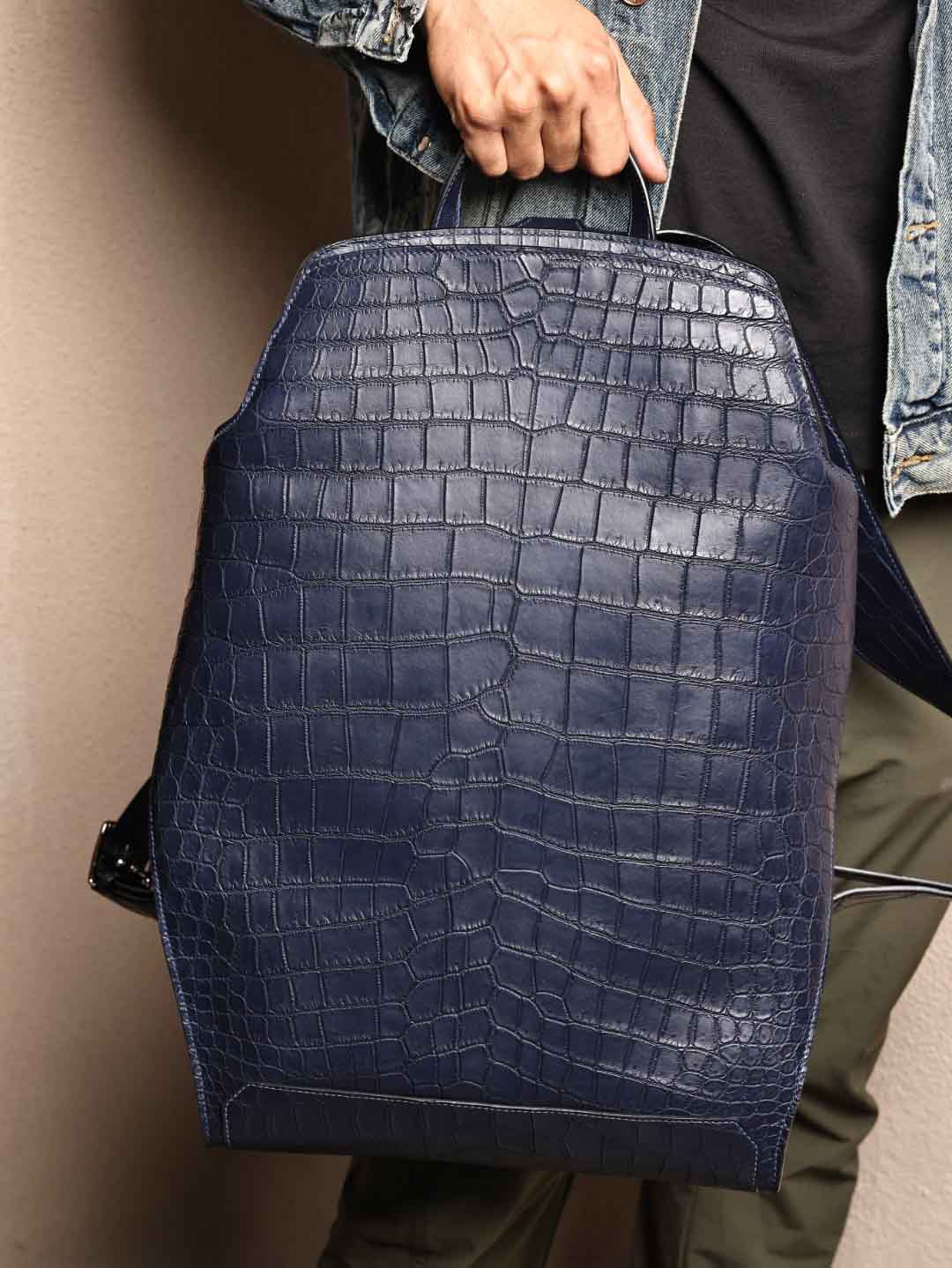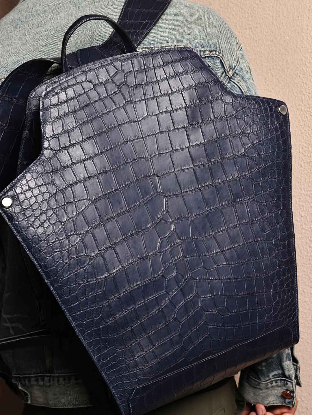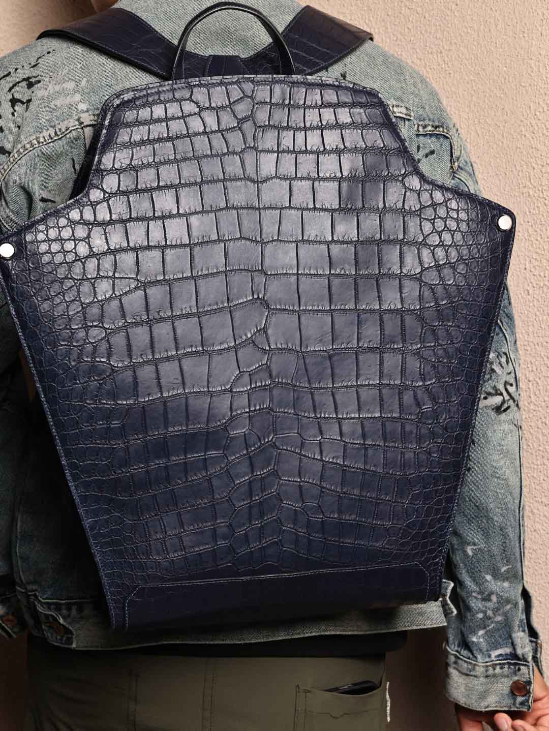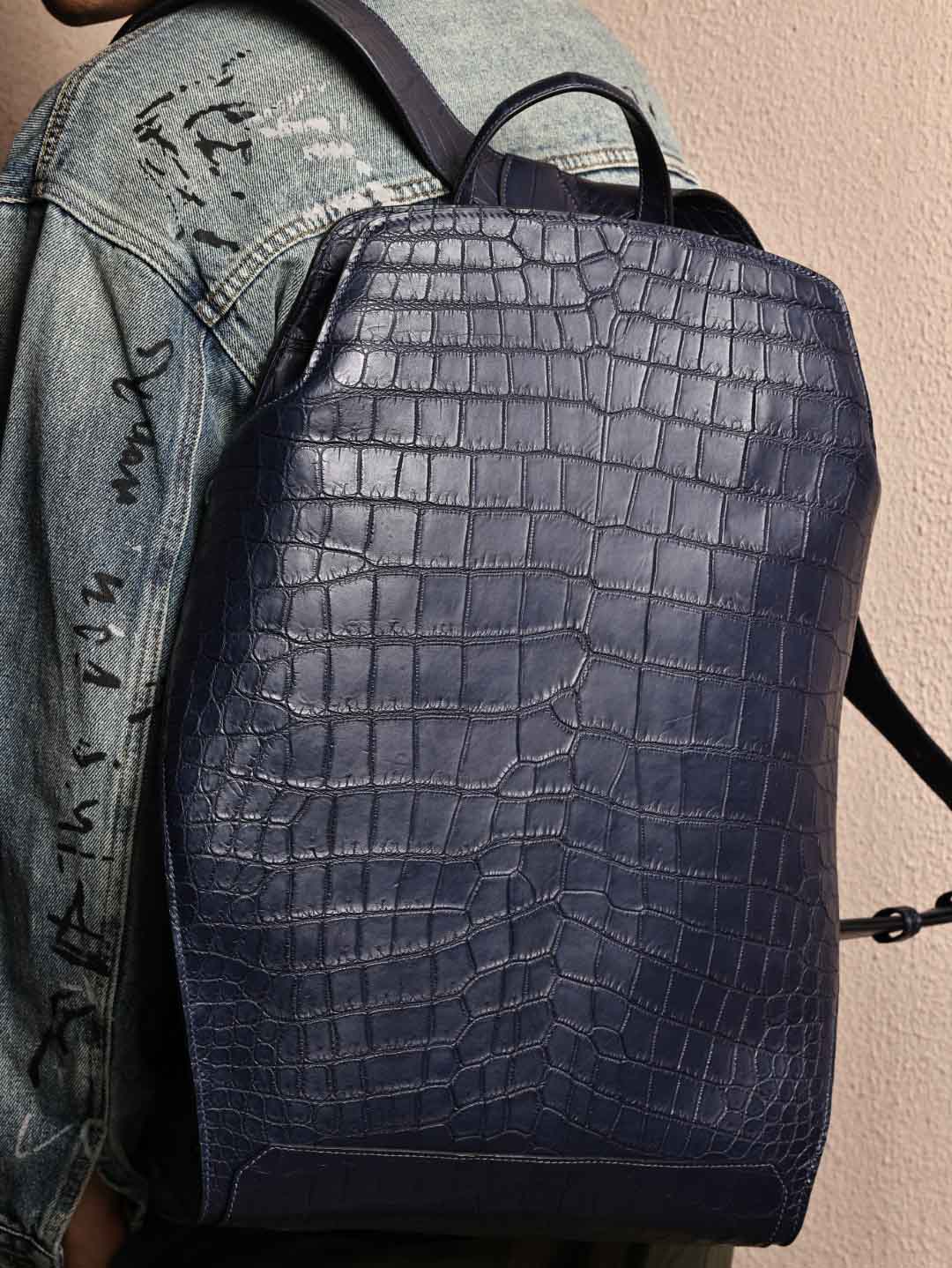 CityBack双肩背包,深蓝色哑光鳄鱼皮,客订出货。