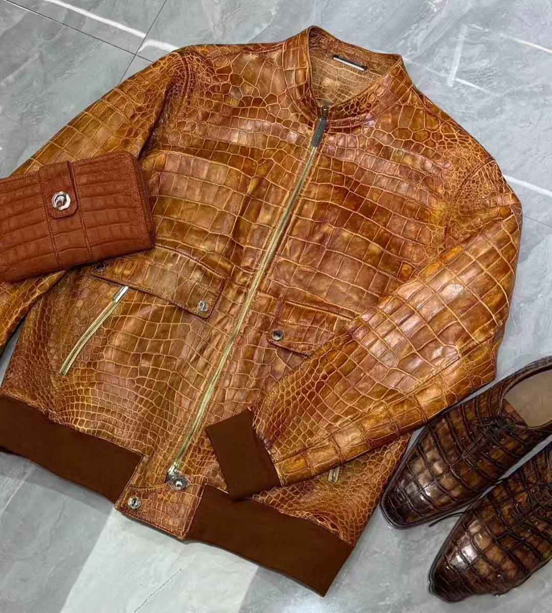 鳄鱼皮衣服夹克定做工厂,可以定做套装等。