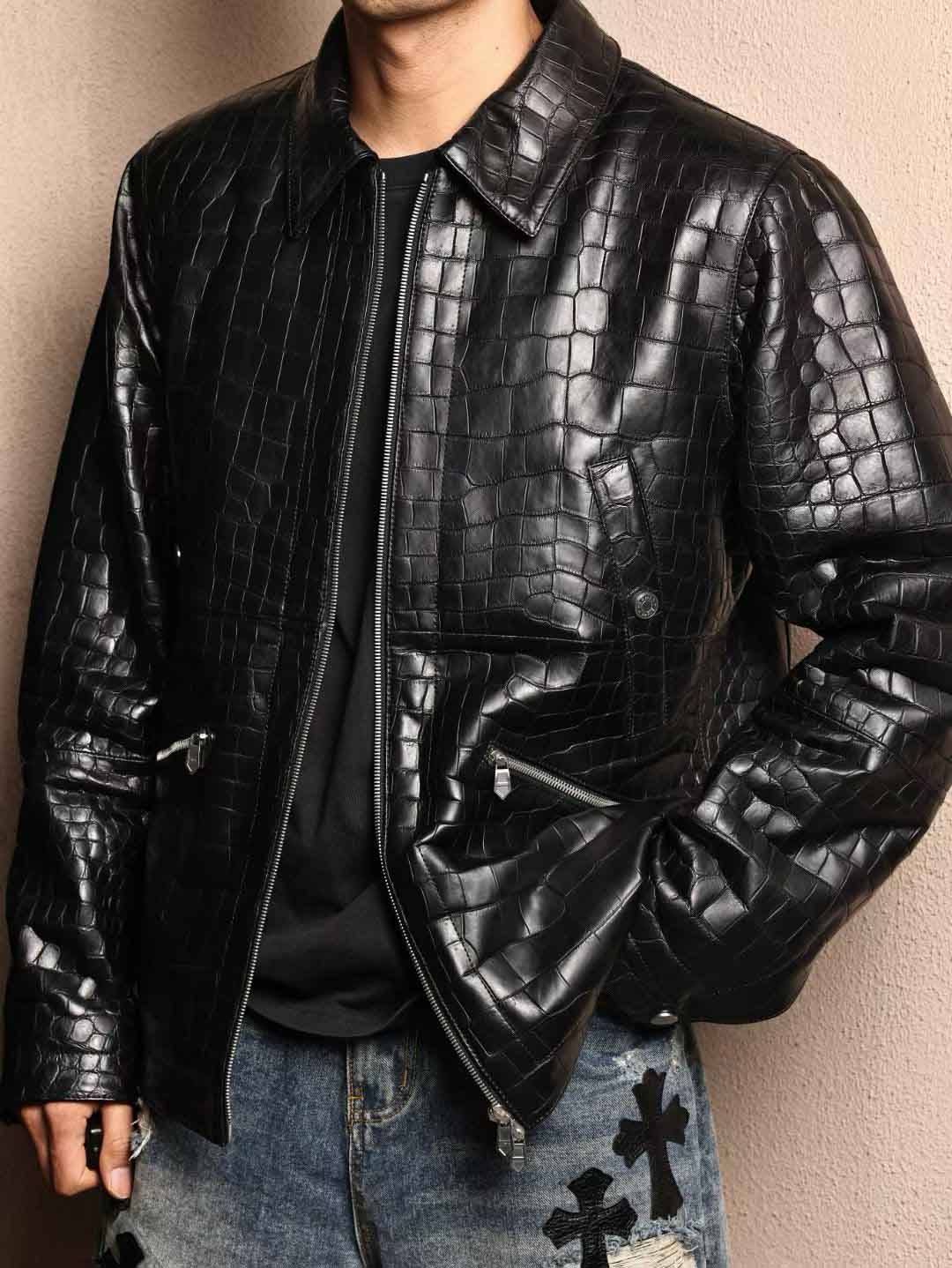 鳄鱼皮衣夹克
