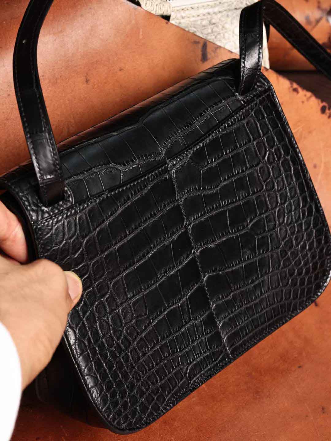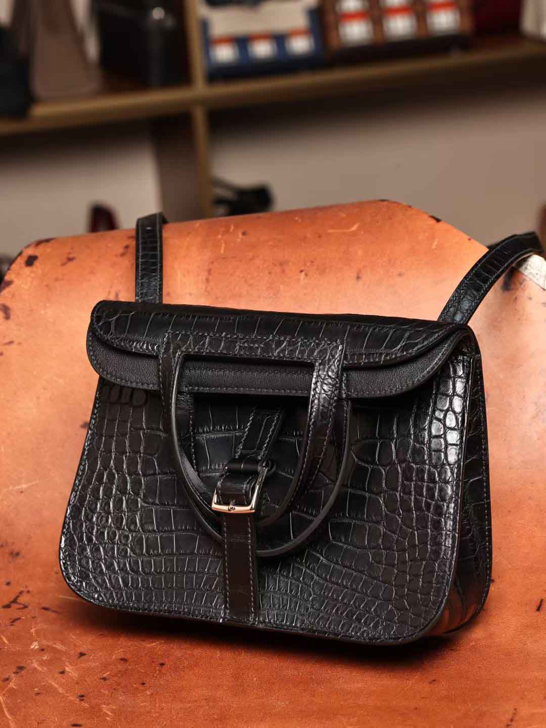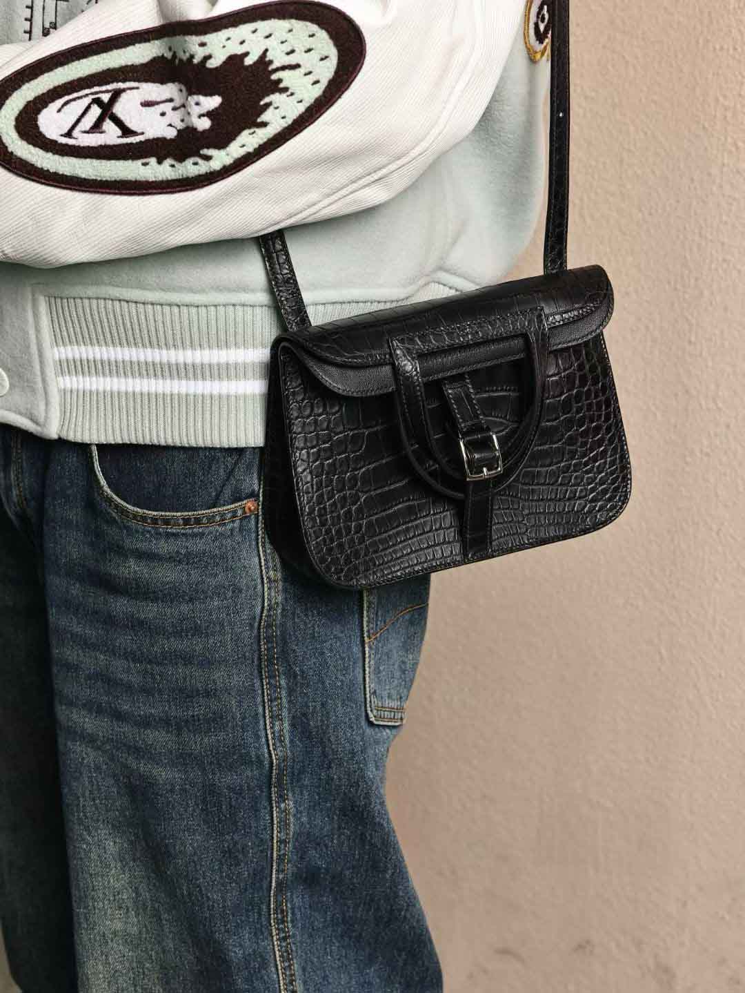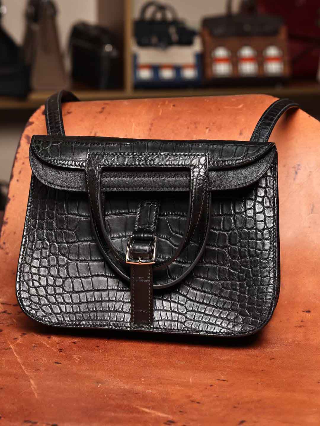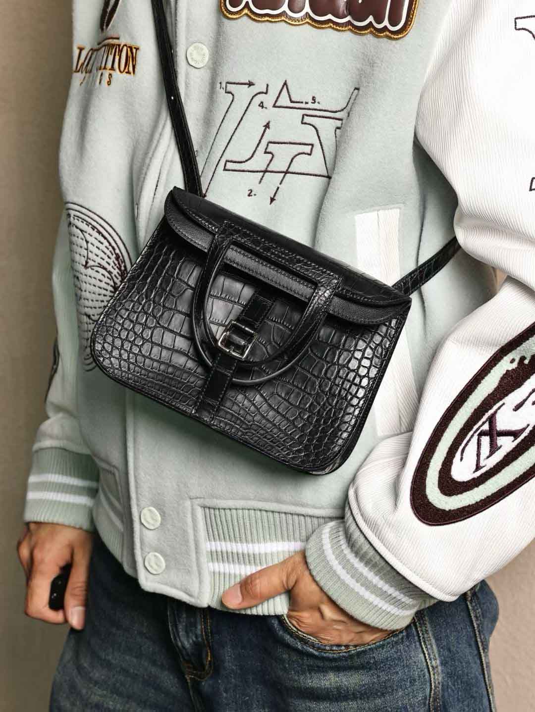 Halzan mini 22cm,黑色哑光HCP美洲鳄,银扣客订出货。微信联系 95506803