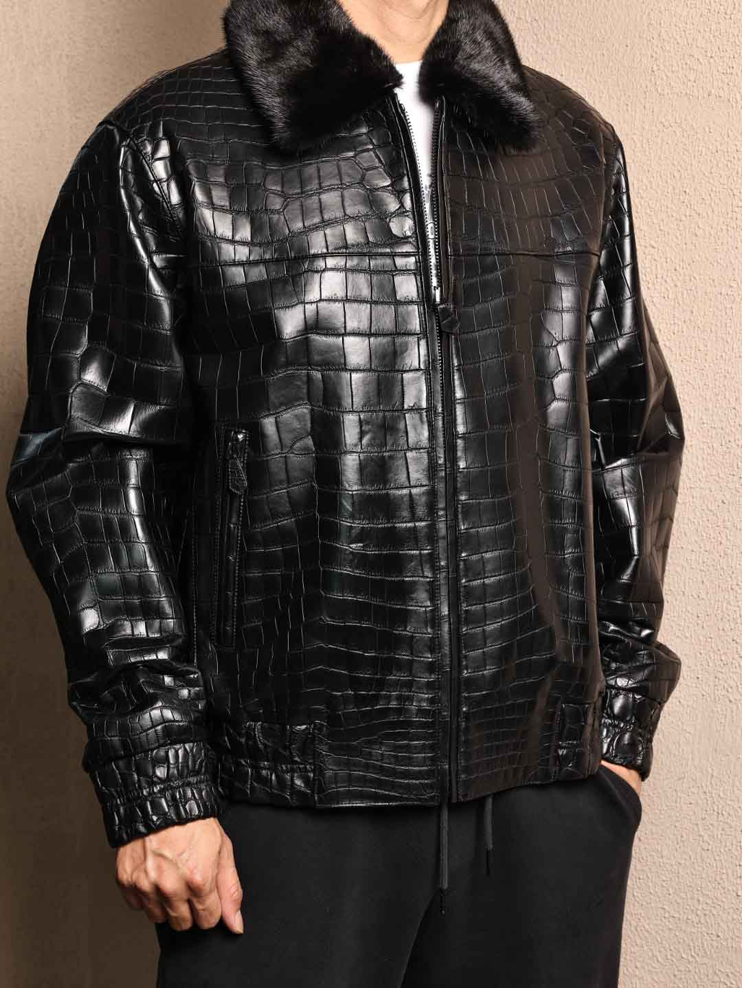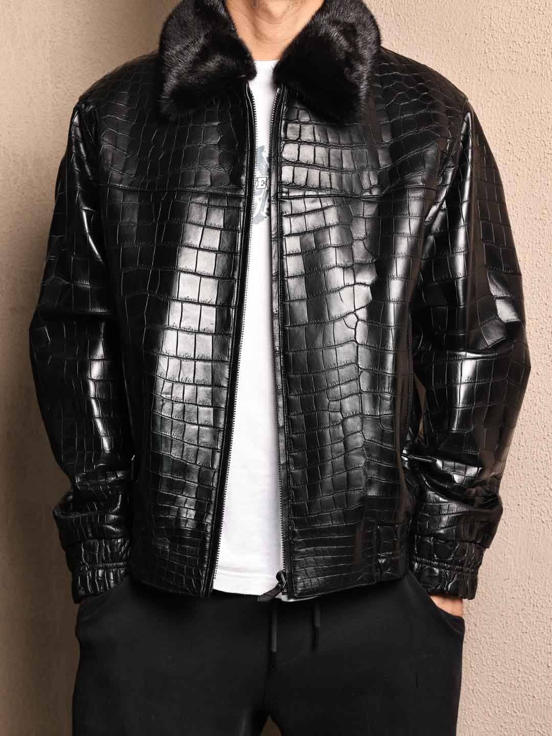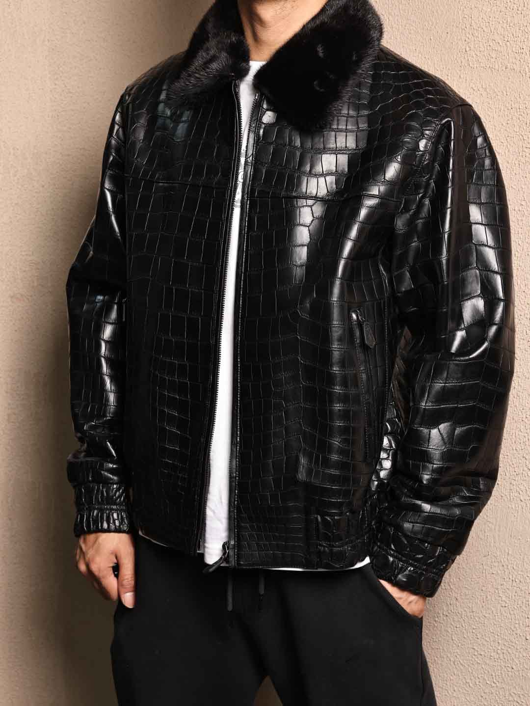 鳄鱼皮毛领夹克