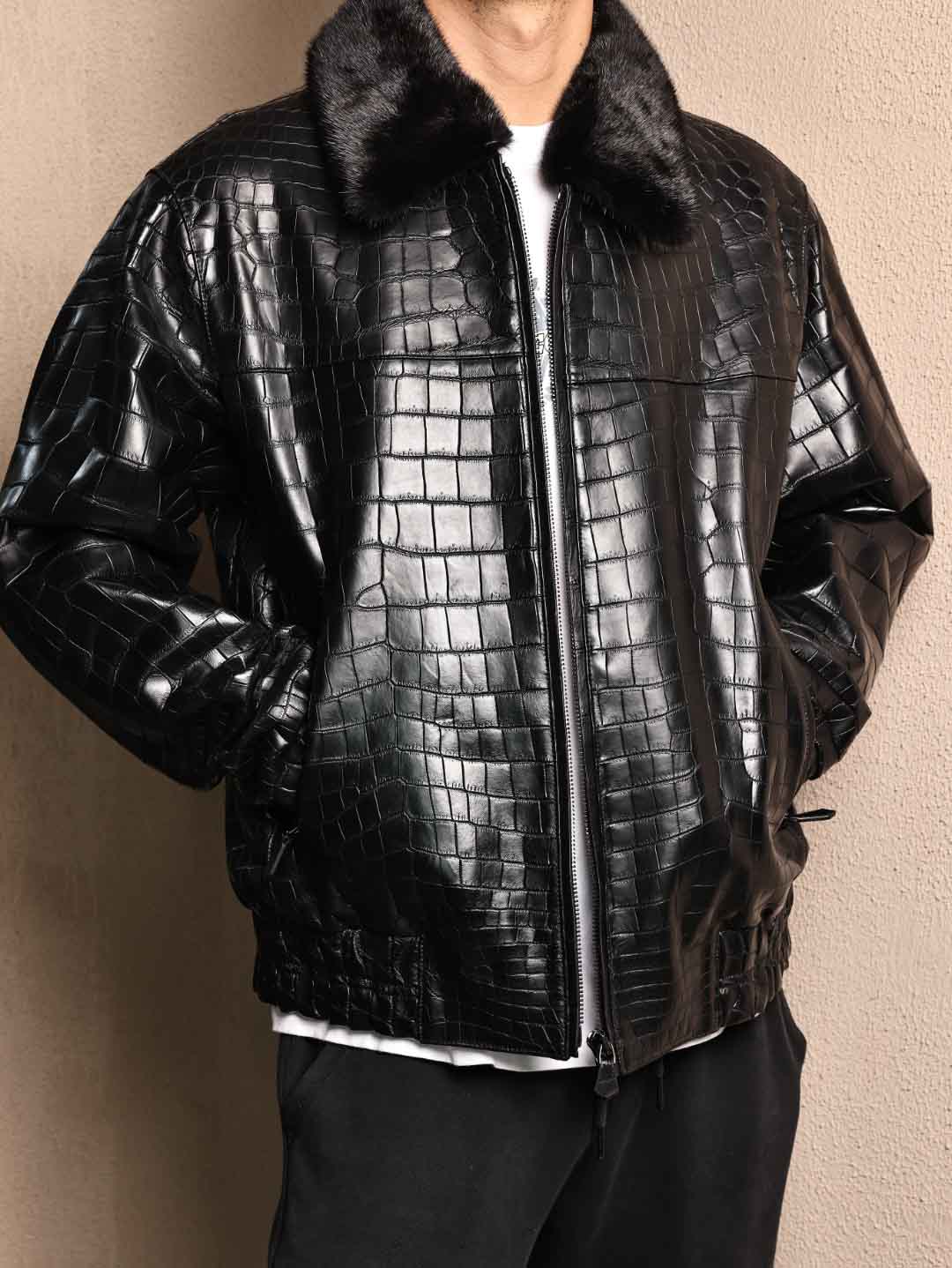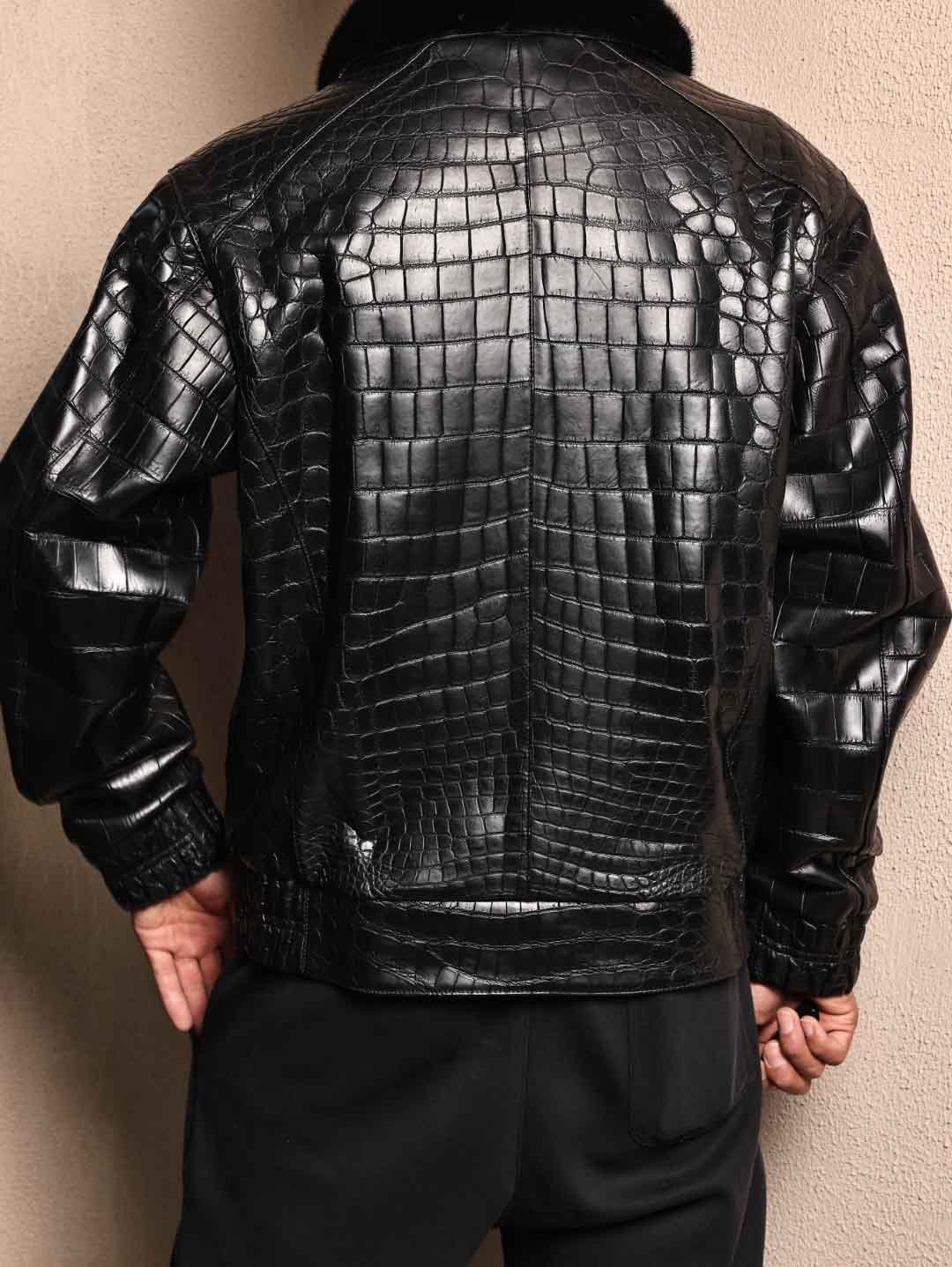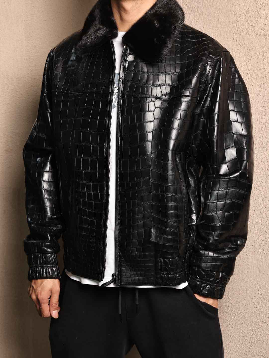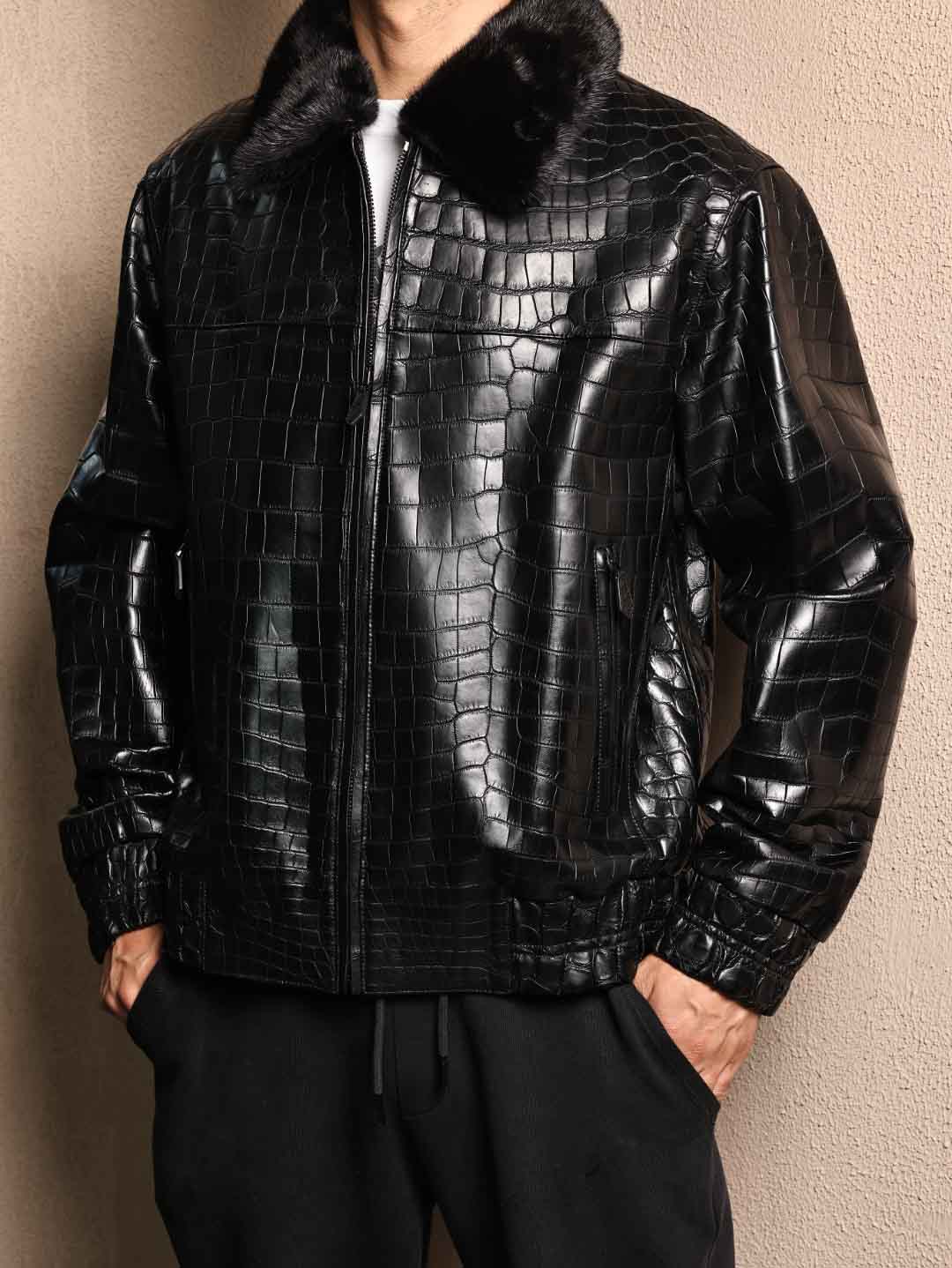 鳄鱼皮毛领夹克