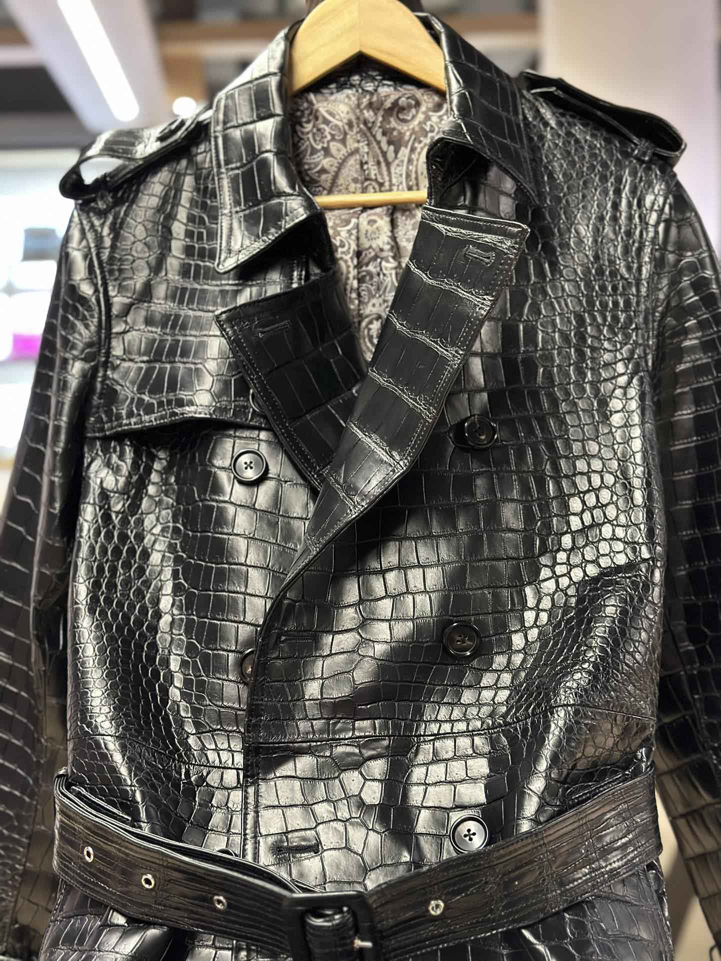 鳄鱼皮风衣~雾面湾鳄商务风衣、XL