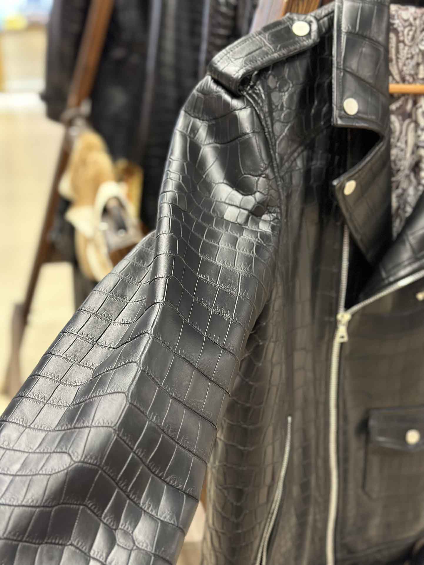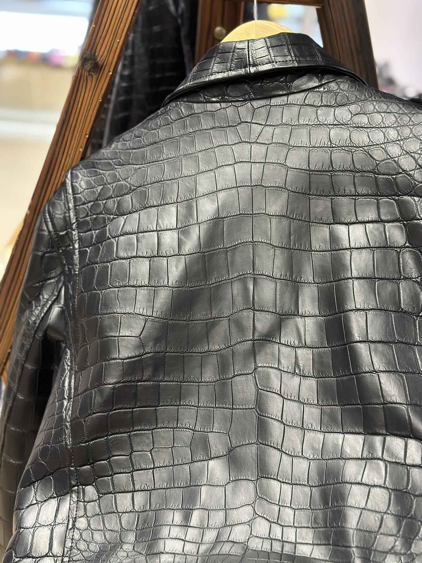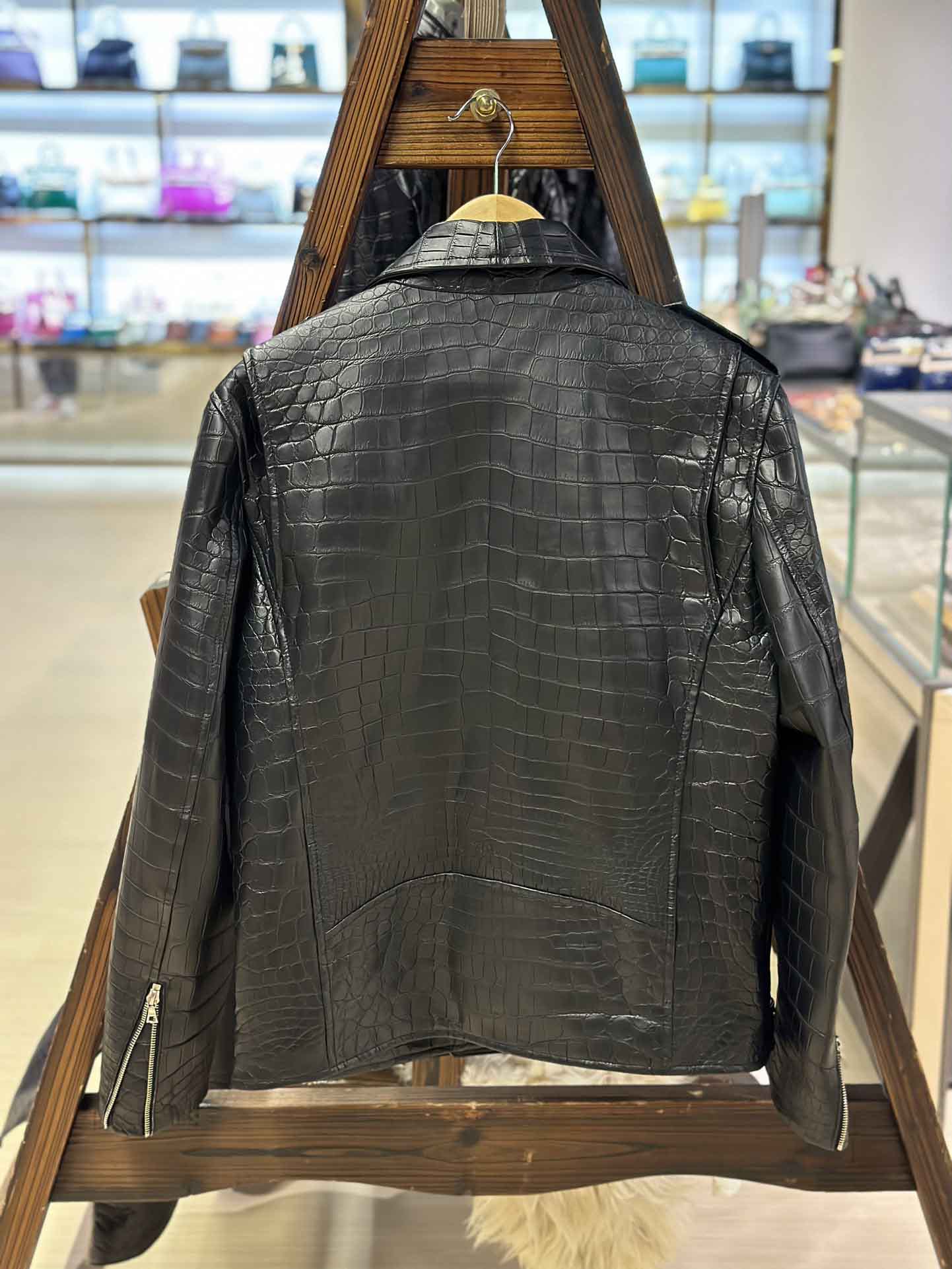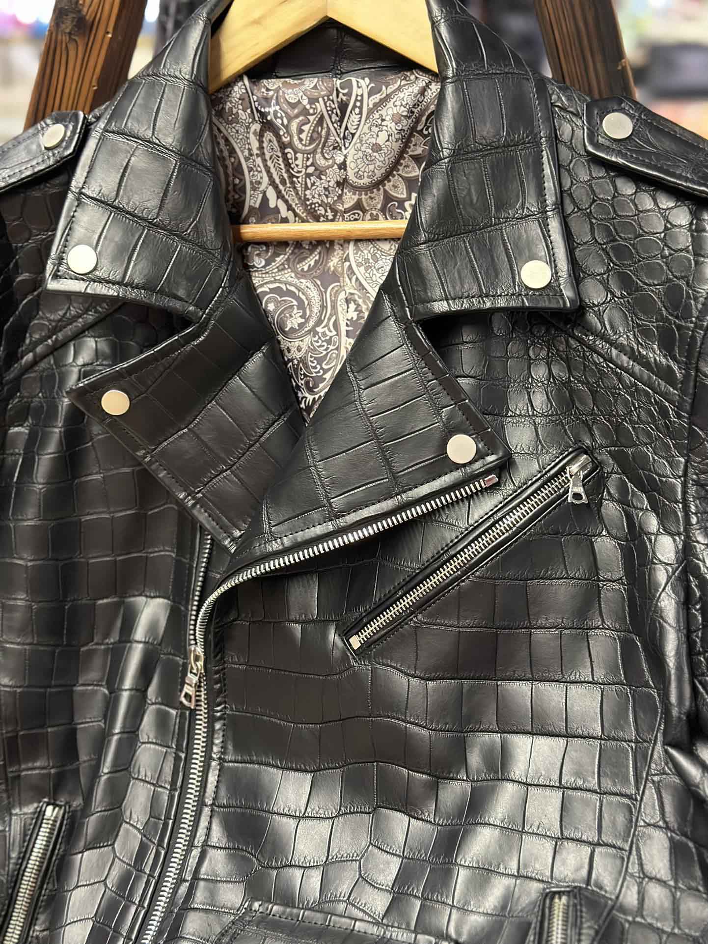 鳄鱼皮机车服~雾面尼罗机车夹克定做工厂、XL码、皮面完美