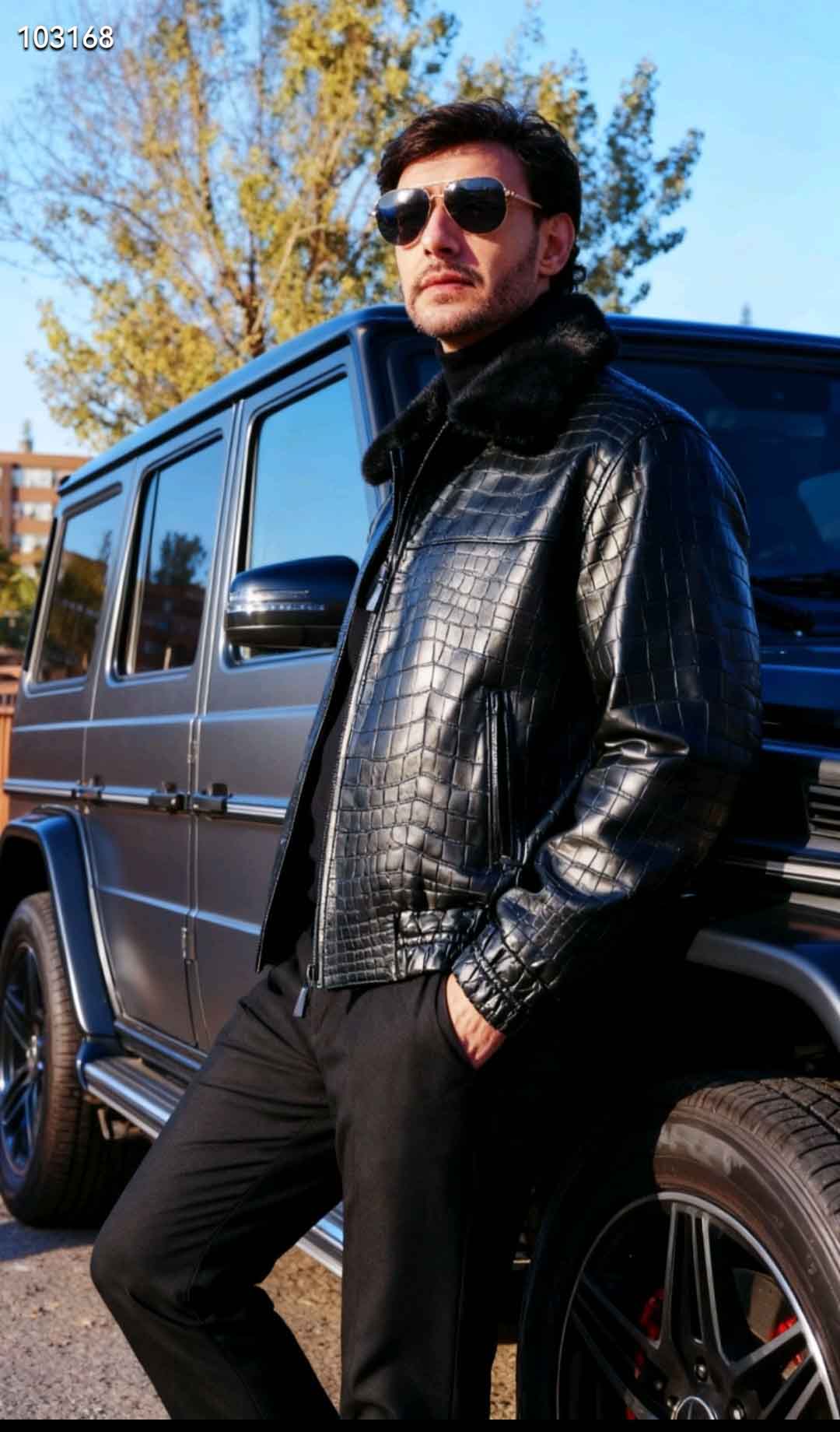 尼罗鳄夹克外套,水貂毛领现货48,50,52,54,56
