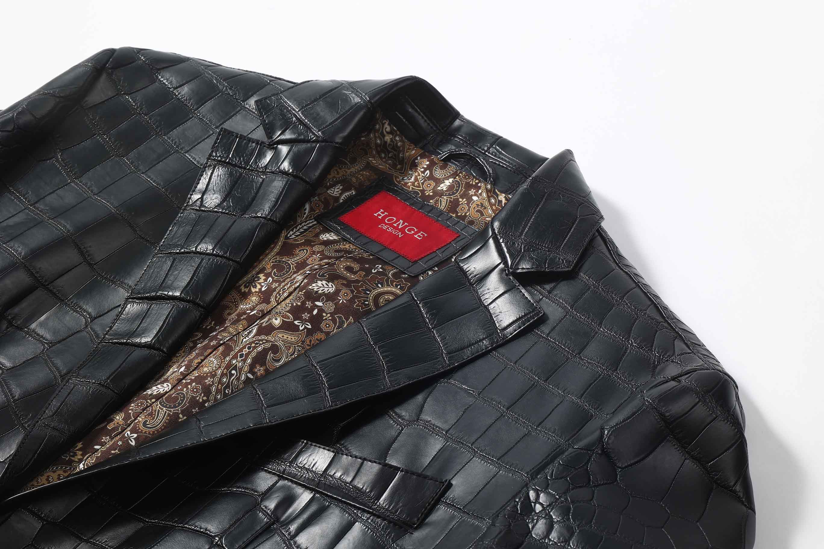 尼罗鳄水染黑色西装,100/100桑蚕丝内里,现货齐全码