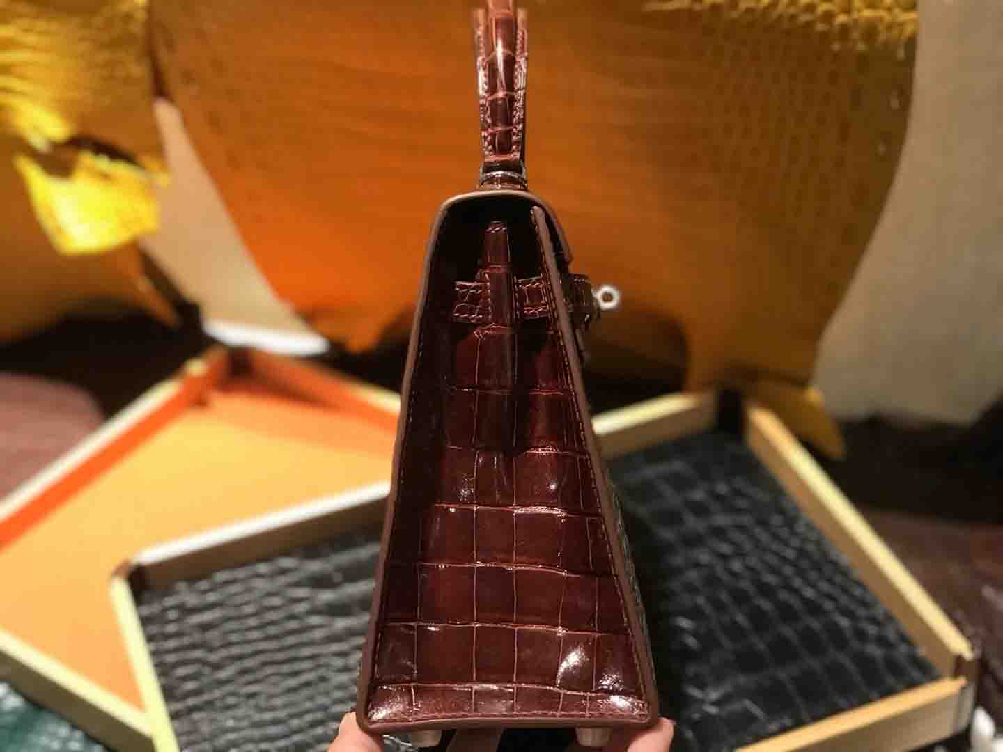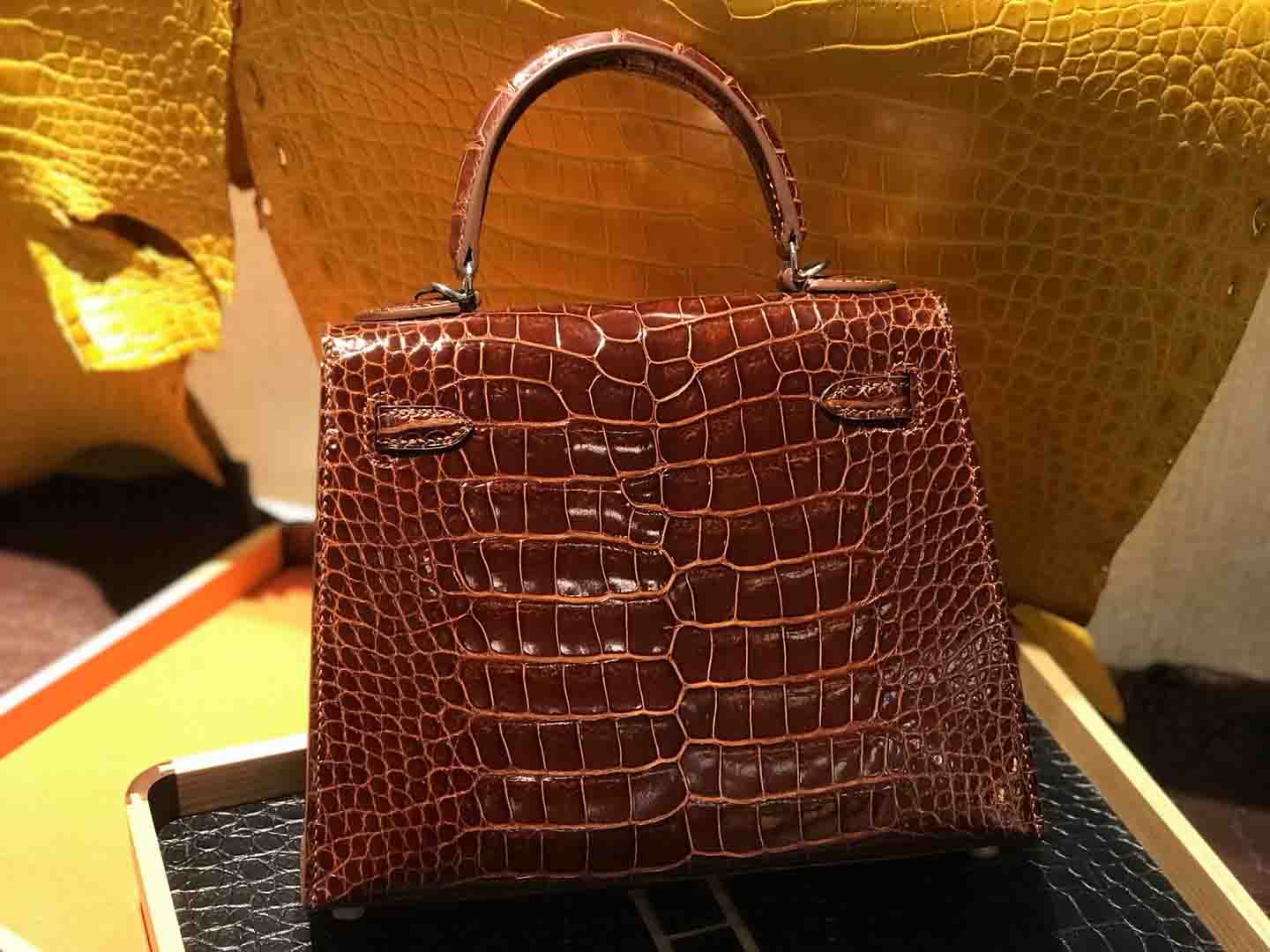 这是全手工高端HCP美洲鳄亮面美洲鳄鳄鱼皮迷你拼色 Kelly25代。