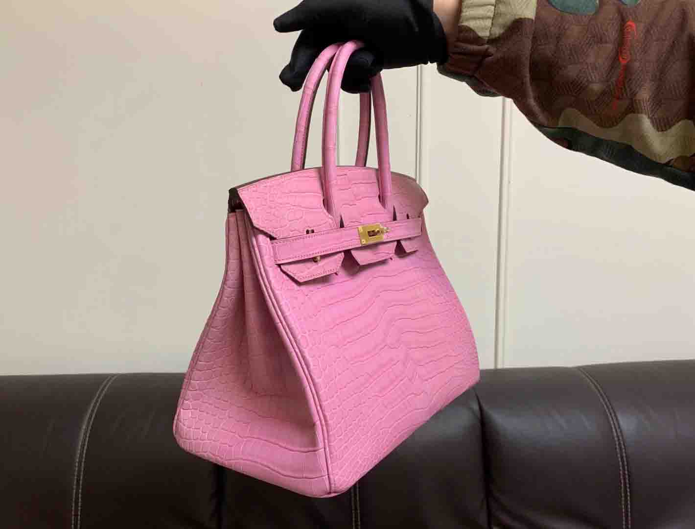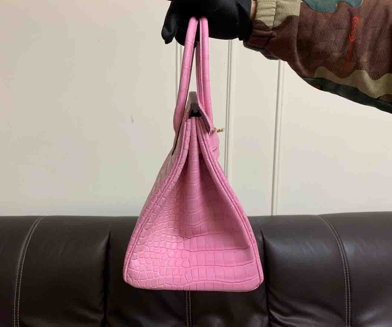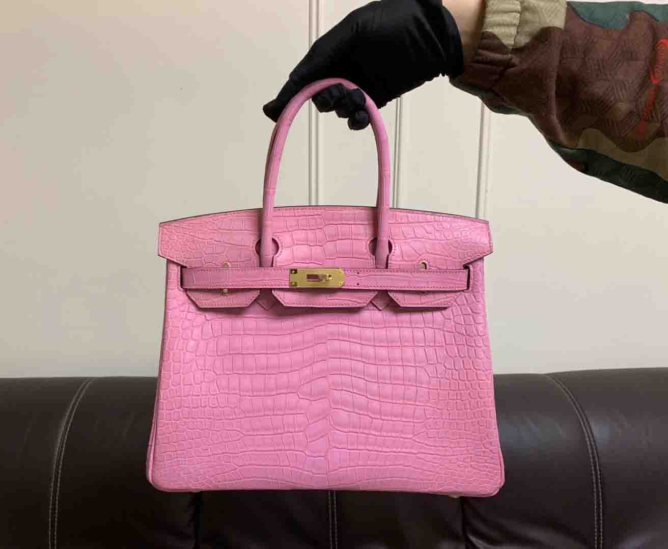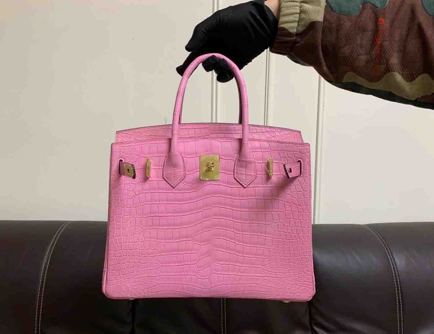 新出铂金30,哑光湾鳄倒V,三张皮制作,半手缝蜡线定制鳄鱼女包微信联系 95506803