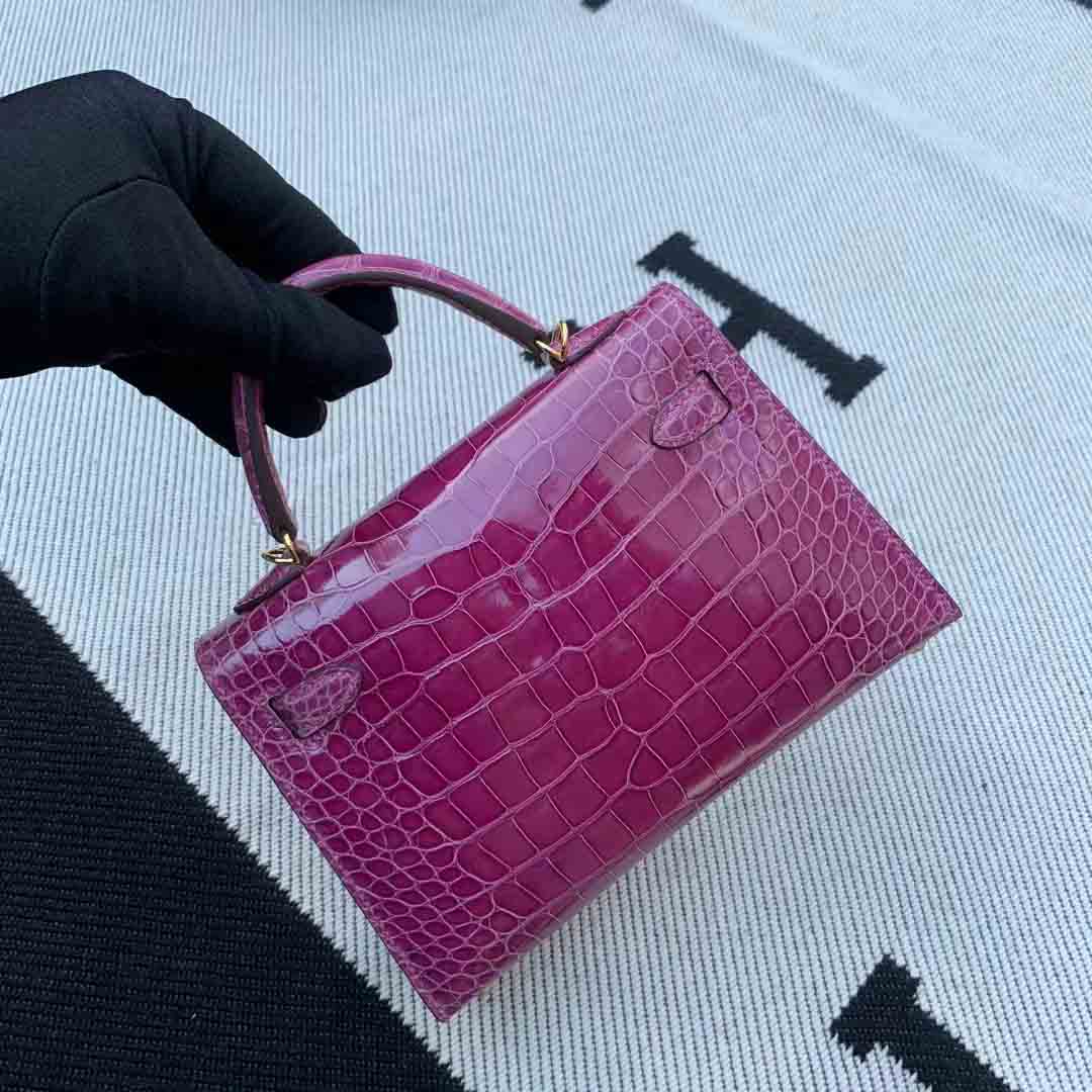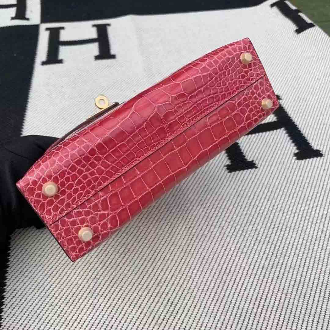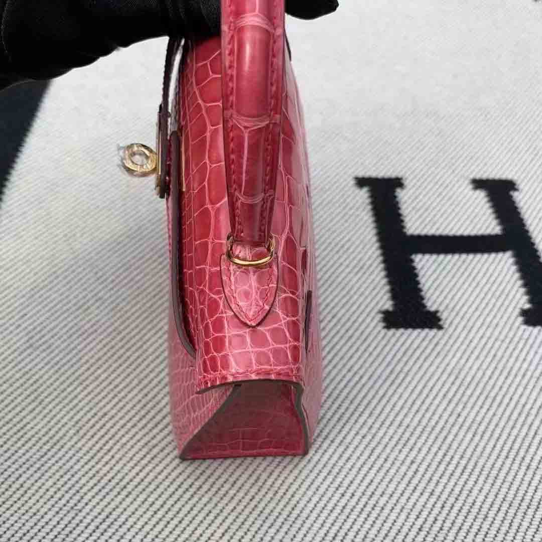 Mini 2代 19cm进口亮面美洲鳄鱼 G5玫瑰木粉纯手缝 一级皮面 顶级品质 现货金扣 ,水墨蓝现货银扣实物拍摄