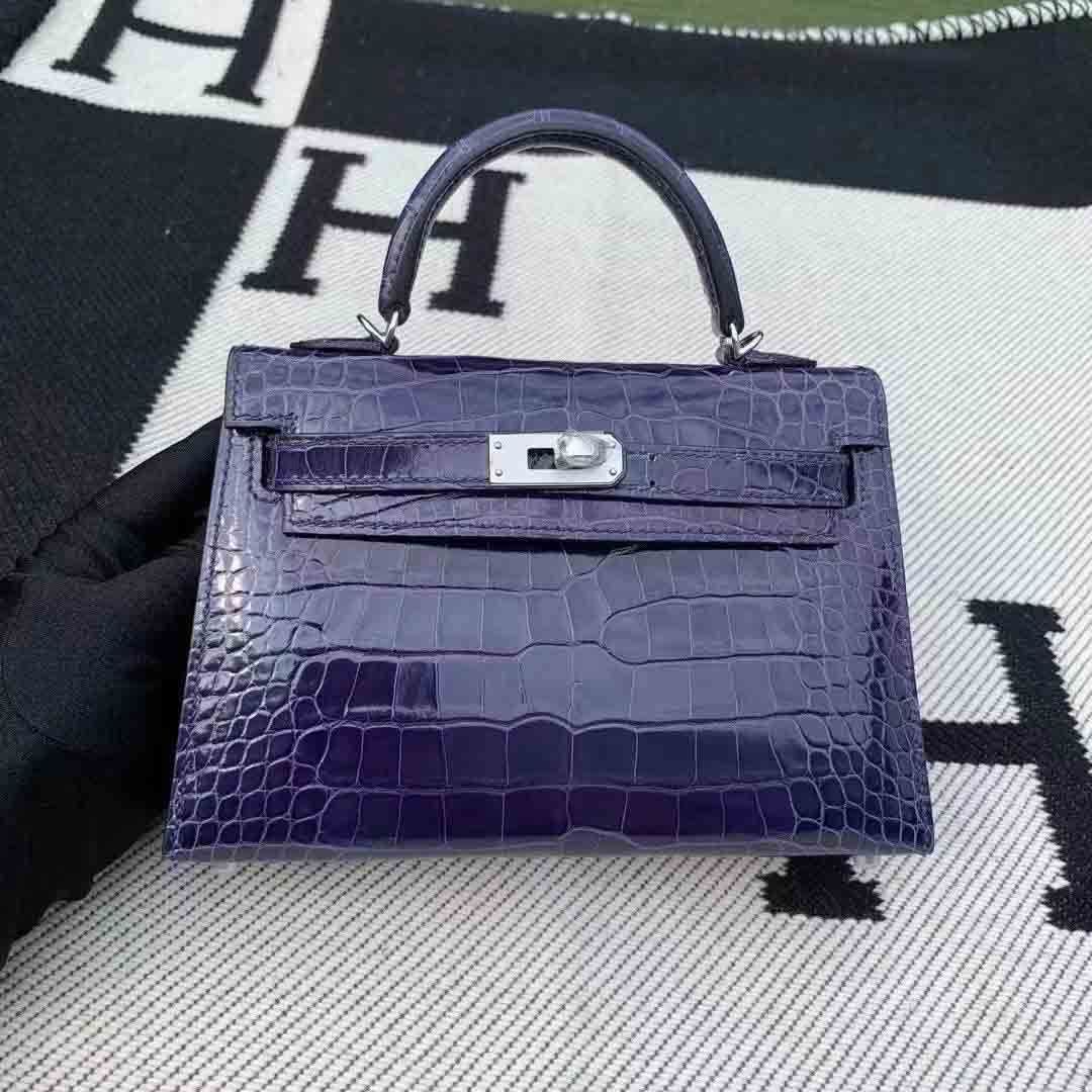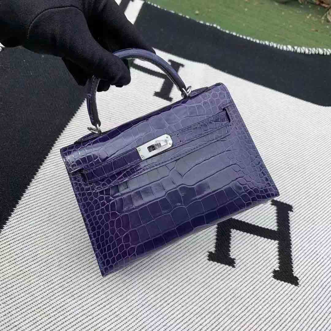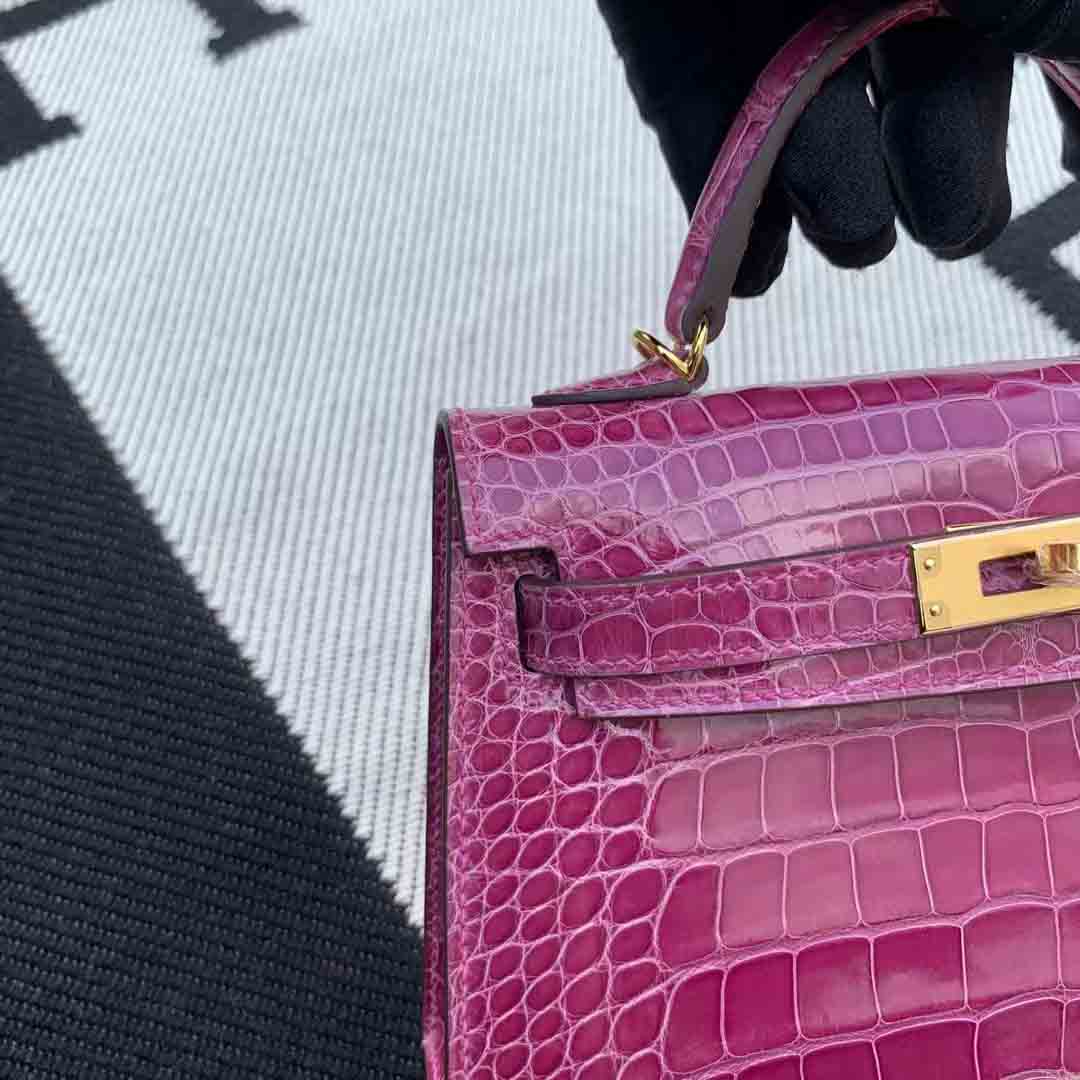 Mini 2代 19cm进口亮面美洲鳄鱼 G5玫瑰木粉纯手缝 一级皮面 顶级品质 现货金扣 ,水墨蓝现货银扣实物拍摄